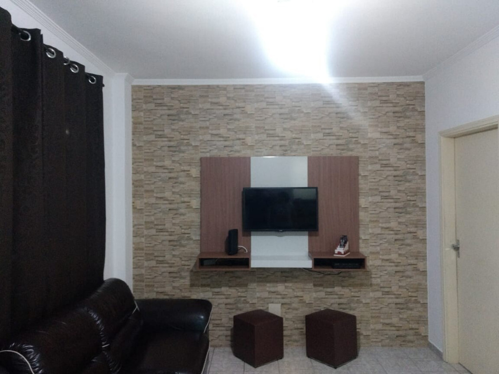Sala com TV 32 polegadas (LED), DVD, sofá, ventilador de teto, TV a cabo, Internet Wi Fi.