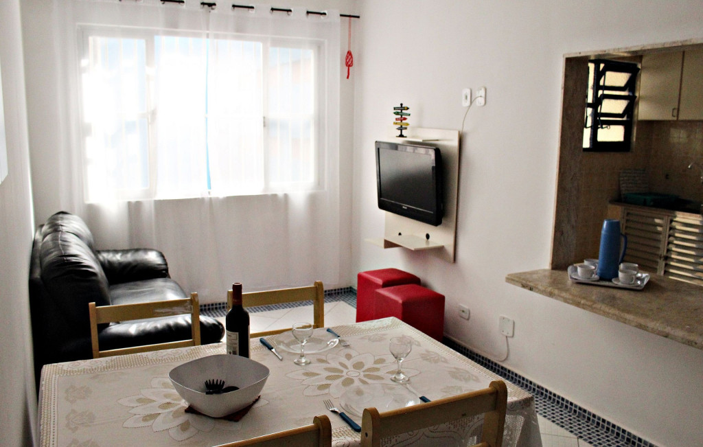 O apartamento é super completo. Tem TV com canais abertos, wi-fi, vaga na garagem, ventilador de teto e um ventilador de coluna pra você colocar onde precisar.A cozinha é toda equipada, com fogão, forno, geladeira e microondas. E tem utensílios para preparar e servir refeições simples.Deixamos um kit praia, com 2 cadeiras e 1 guarda sol pra você curtir a praia.Mas o melhor é que ele fica a alguns passos da areia!! É só descer e aproveitar! ;-)Divirta-se!