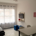 O ap. é bem arejado e iluminado. Tem ventilador de teto na sala, ar condicionado no quarto, Wi-Fi e a TV tem canais abertos, além de vaga na garagem.