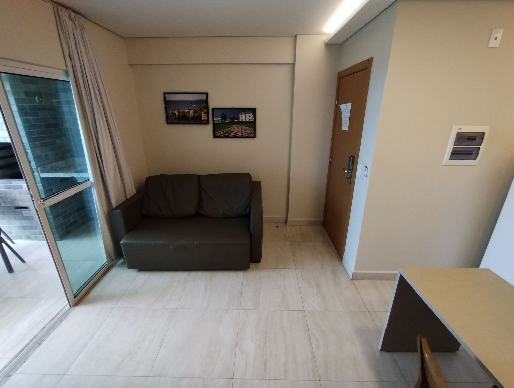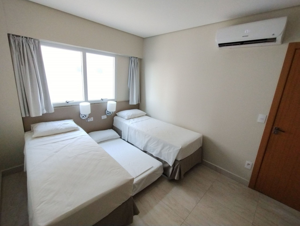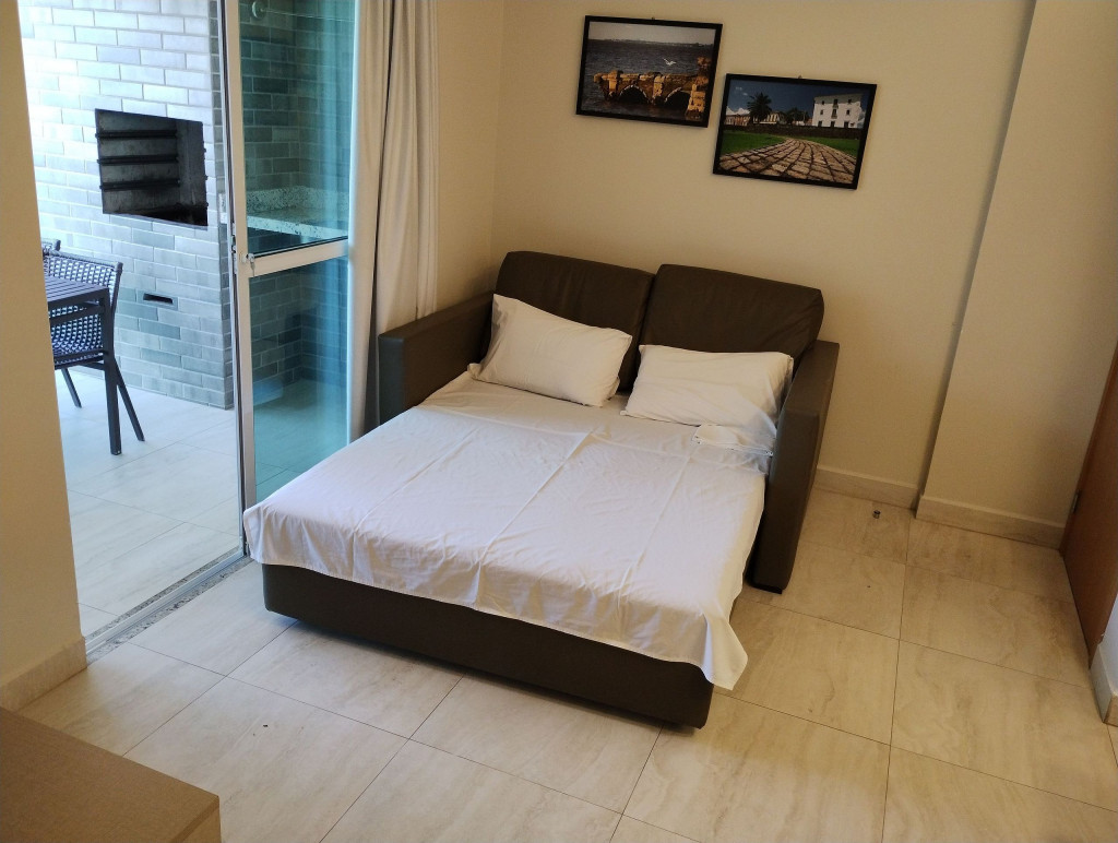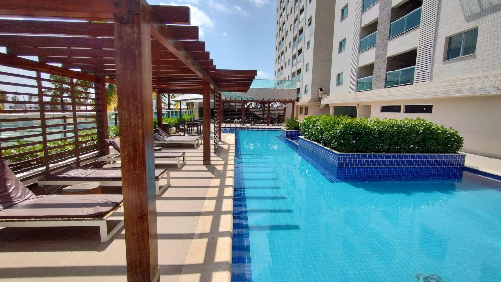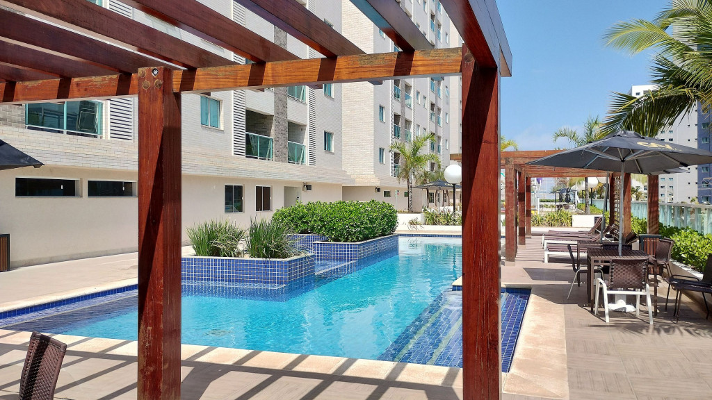 Apartamento Mobiliado, 2 Quartos sendo 1 Suíte, 1 Banheiro Social - Cozinha - TV - Ar-condicionado - Varanda, Condomínio Fechado: - Portaria - Segurança 24h - Elevador - Piscina - Academia - Sauna - A 1km da Praia
