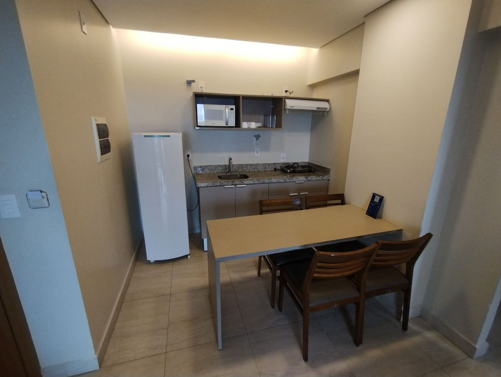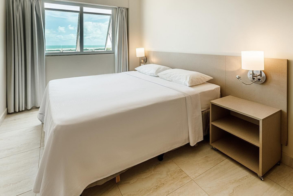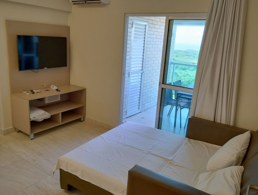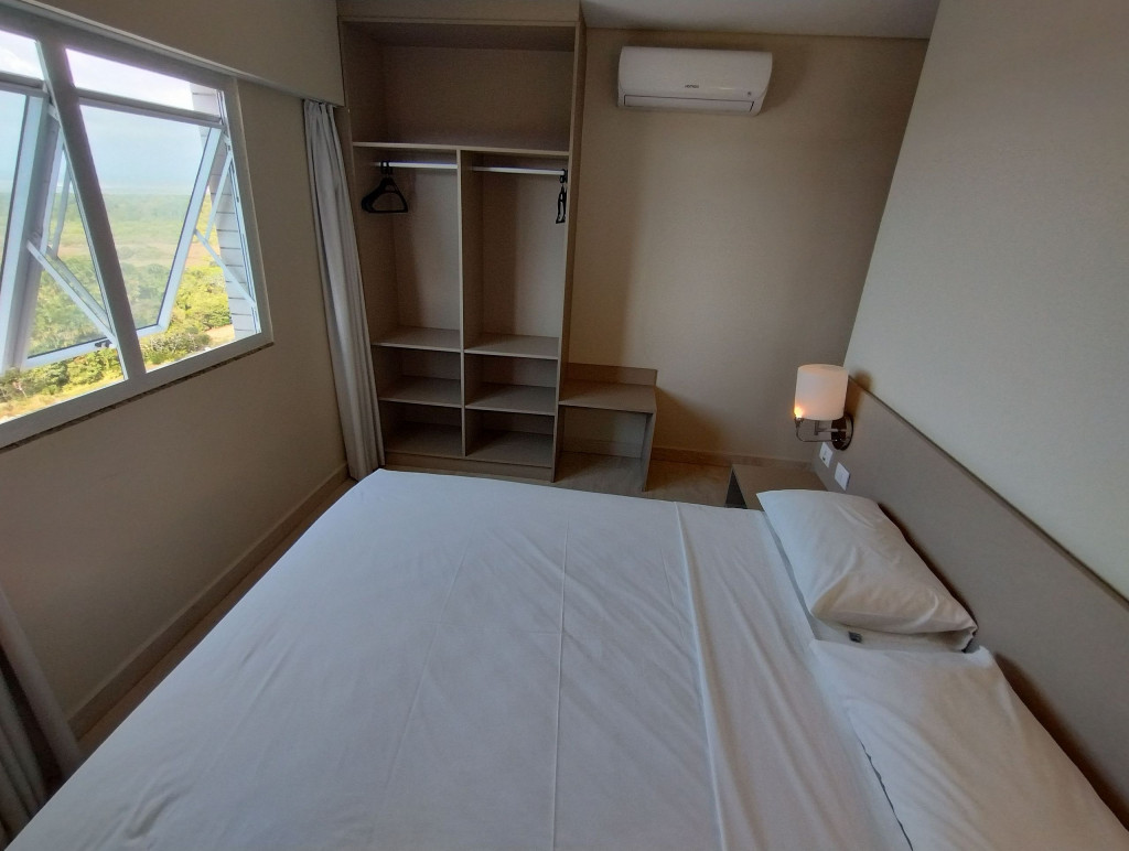 Apartamento Mobiliado, 2 Quartos sendo 1 Suíte, 1 Banheiro Social - Cozinha - TV - Ar-condicionado - Varanda, Condomínio Fechado: - Portaria - Segurança 24h - Elevador - Piscina - Academia - Sauna - A 1km da Praia