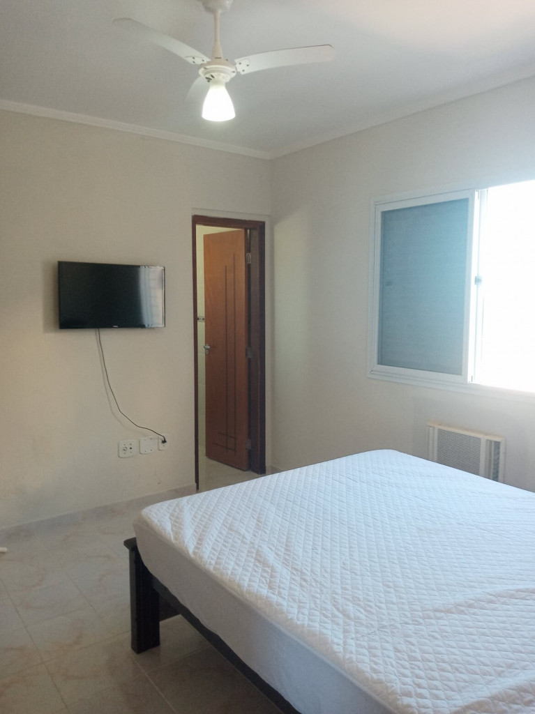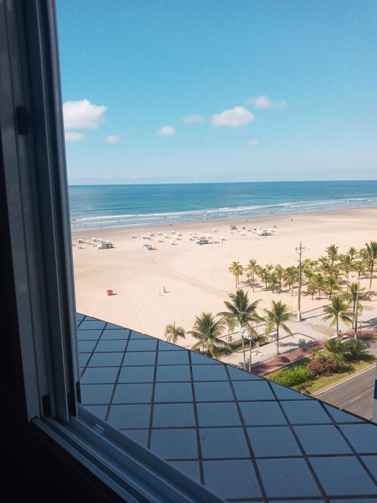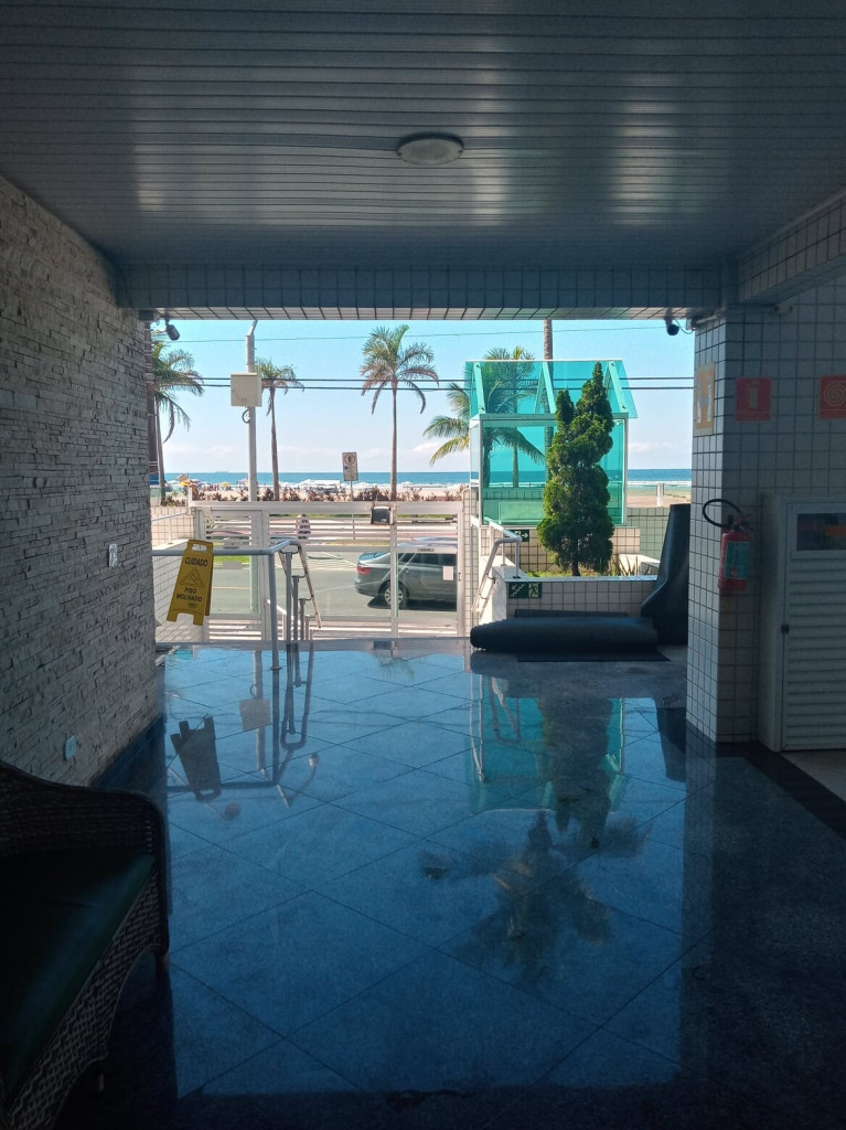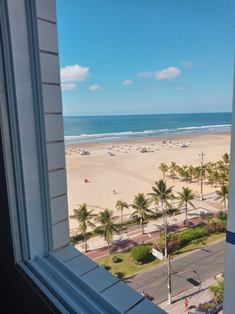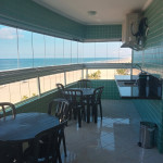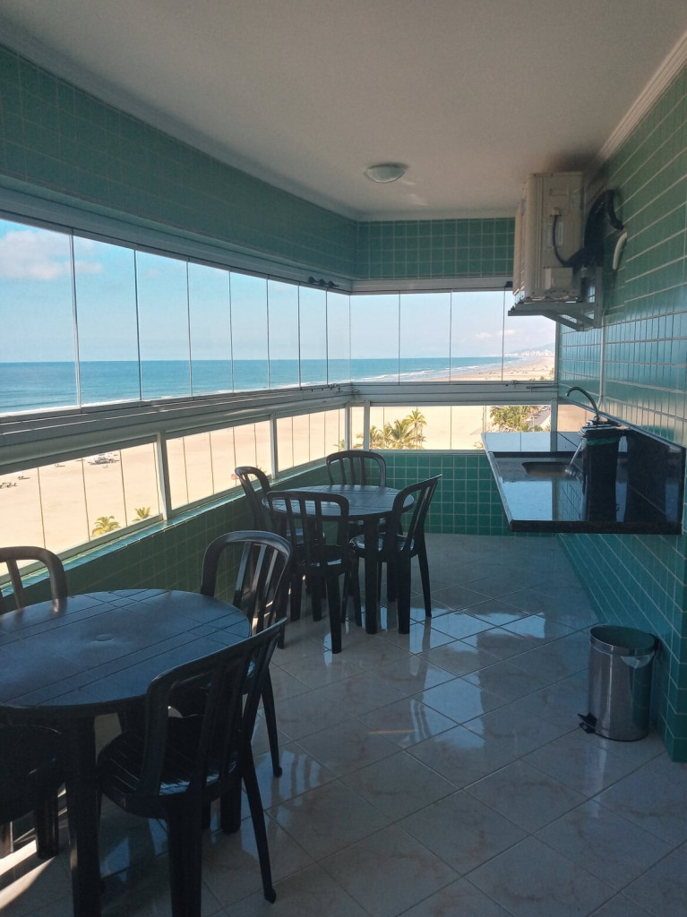 APTO FRENTE MAR ALTO PADRÃO COM 3 DORMS TODOS COM VISTA MAR, VENTILADOR DE TETO E AR CONDICIONADO, SENDO 1 SUITE COM CAMA DE CASAL, GUARDA ROUPAS, BANHEIRO COM BOX DE VIDRO, 1 DORM COM CAMA DE CASAL, TV E ESTANTE E 1 DORM CONTENDO 1 BELICHE E 5 COLCHÕES DE SOLTEIRO AVULSO. BANHEIRO SOCIAL COM BOX DE VIDRO.
