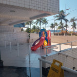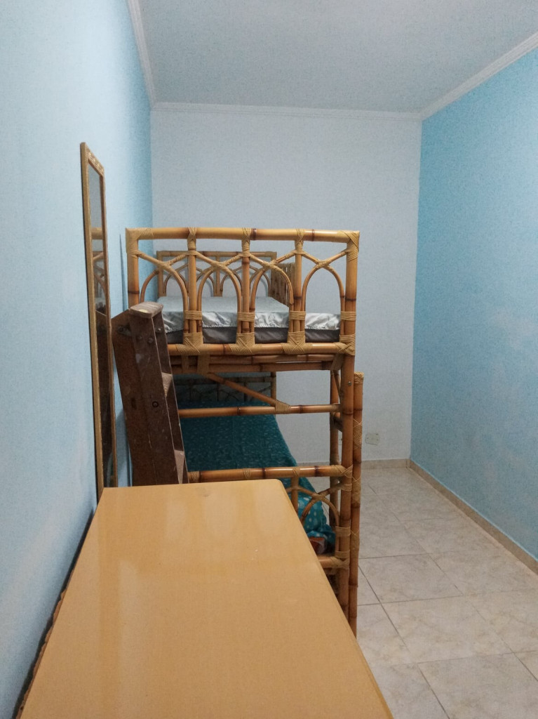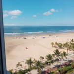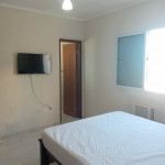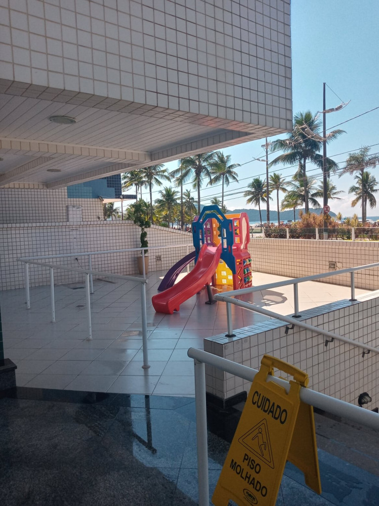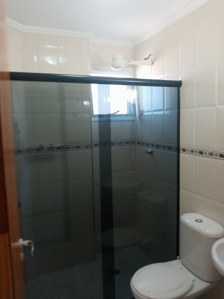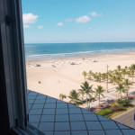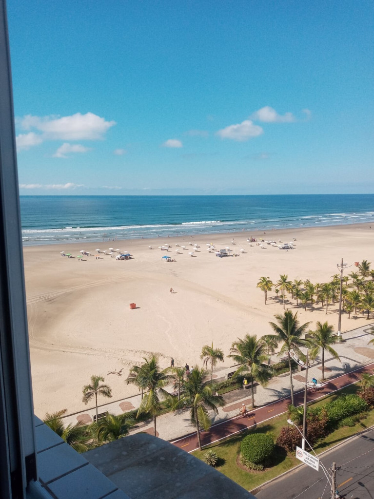 APTO FRENTE MAR ALTO PADRÃO COM 3 DORMS TODOS COM VISTA MAR, VENTILADOR DE TETO E AR CONDICIONADO, SENDO 1 SUITE COM CAMA DE CASAL, GUARDA ROUPAS, BANHEIRO COM BOX DE VIDRO, 1 DORM COM CAMA DE CASAL, TV E ESTANTE E 1 DORM CONTENDO 1 BELICHE E 5 COLCHÕES DE SOLTEIRO AVULSO. BANHEIRO SOCIAL COM BOX DE VIDRO.