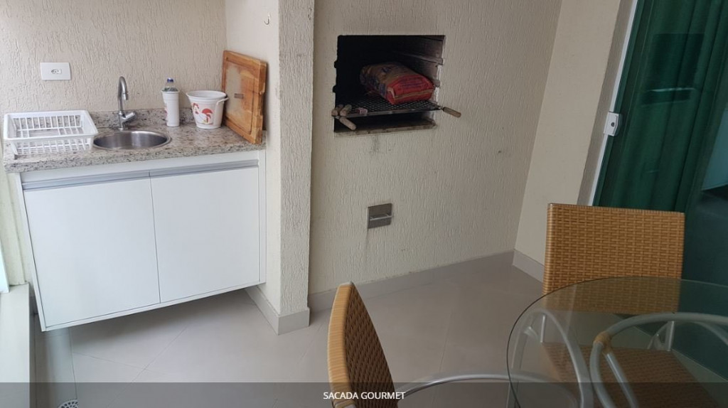 Ampla sacada gourmet com churrasqueira.