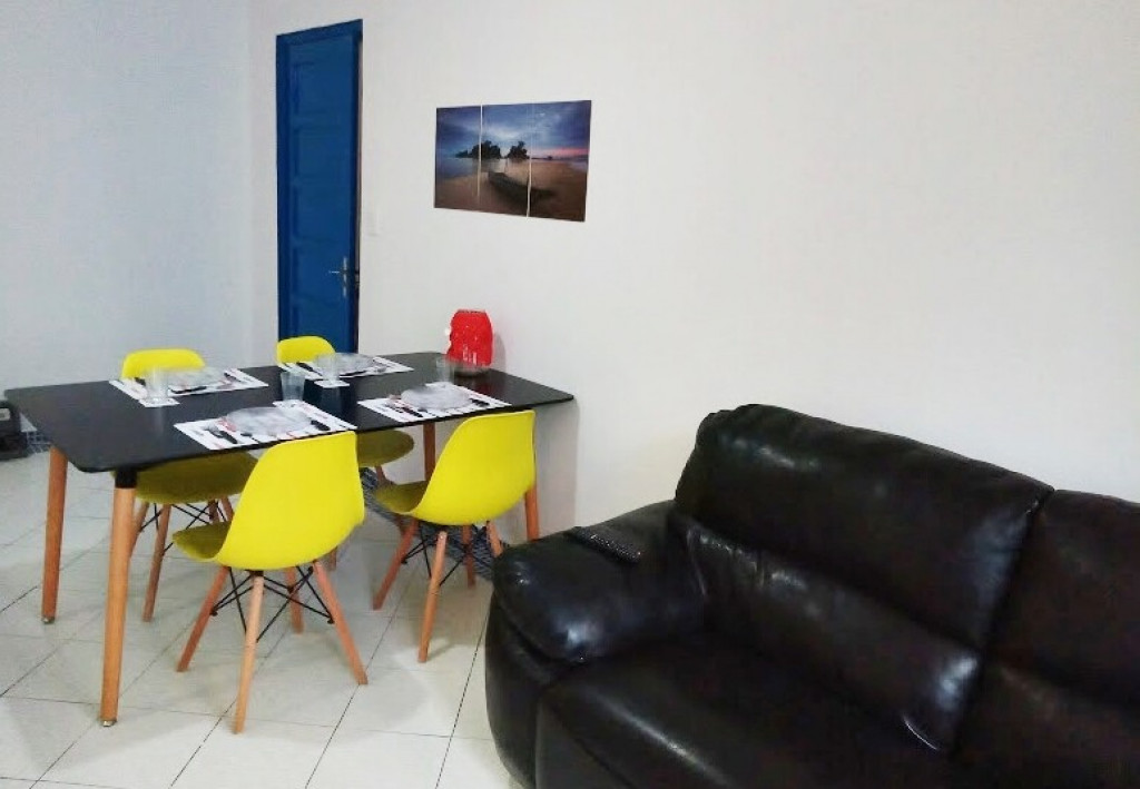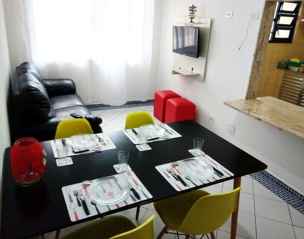 O apto 301 é um espaço completo, pensado para você e sua família aproveitarem dias ótimos na praia. Tem cozinha toda equipada, sala com TV e ventilador de teto e quarto com 1 cama de casal e 1 beliche.