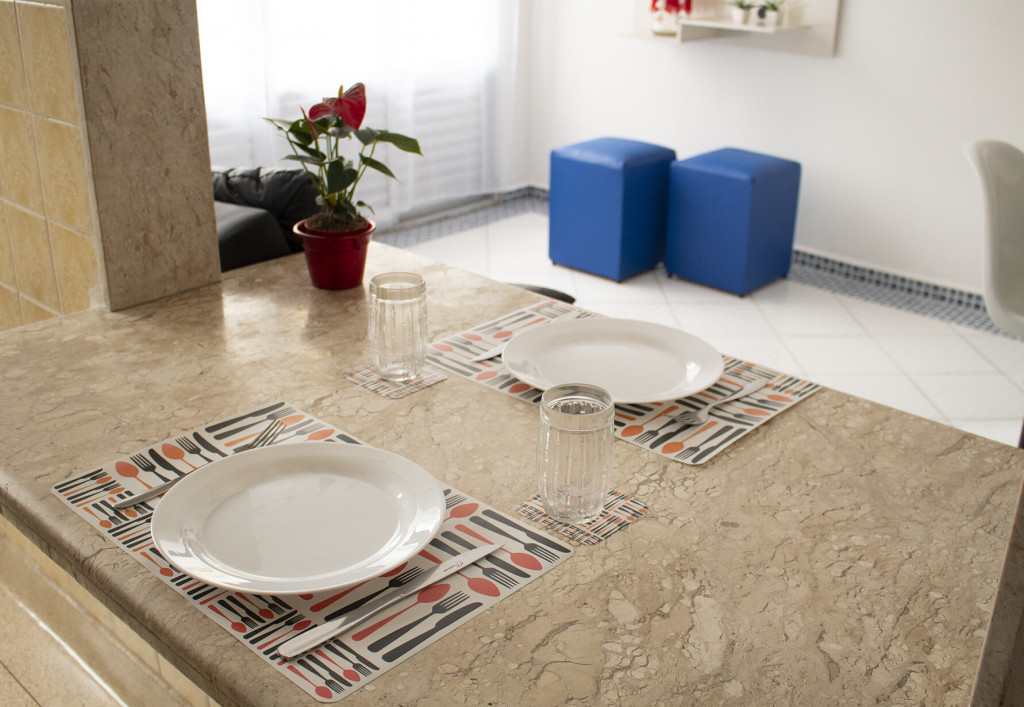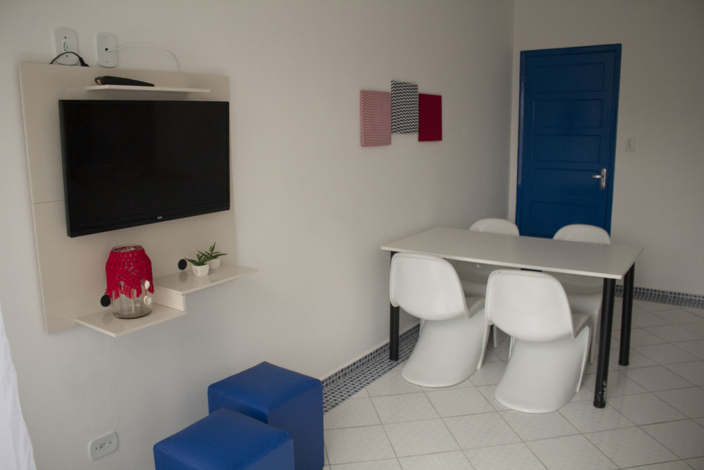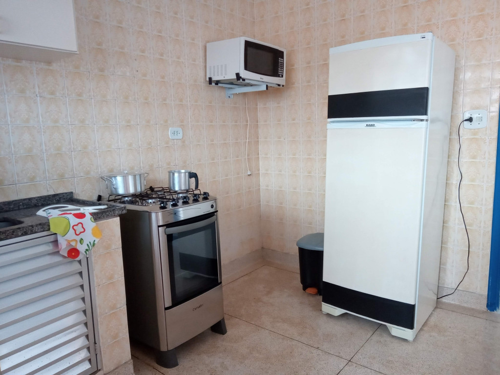 Tem um quarto amplo com 1 cama de casal e 1 beliche e ar condicionado. Na sala, tem TV com canais abertos e ventilador de teto. E na cozinha tem tudo o que você precisa para preparar pequenas refeições.