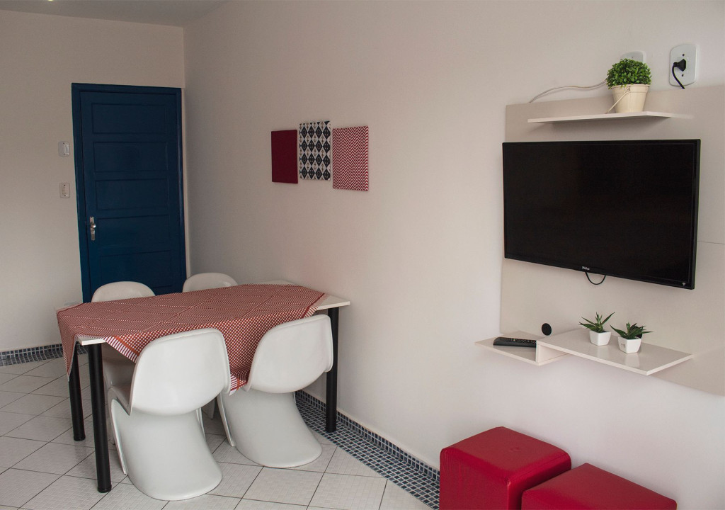 Regulamento: • Ao chegar, você recebe um chaveiro contendo 3 chaves: . 1 do apartamento, . 1 da porta de entrada e . 1 do portão da garagem É sua responsabilidade mantê-la em local seguro, para sua própria segurança e dos demais hóspedes. A perda ou dano de qualquer uma delas deve ser comunicada ao zelador e o custo de reposição será cobrado conforme o valor correspondente. • Ao entrar ou sair do prédio, mantenha sempre trancado o portão da garagem. • Não acumule lixo no apartamento a fim de evitar insetos e mau cheiro. Dispomos de uma lixeira na entrada do prédio onde os sacos devem ser depositados. Na sua saída, antes da entrega das chaves, retire o lixo do apartamento. • Sempre que for sair do apartamento, mesmo que por curto período, certifique-se de ter apagado as luzes e desligado os aparelhos, principalmente ar-condicionado e ventiladores. • Não é permitido o uso de aparelhos de som em alto volume em qualquer horário. Das 22h até as 8h o horário de silêncio deve ser respeitado. • Dentro do prédio, não é permitida a presença de pessoas que não estejam hospedadas. • NÃO É PERMITIDO FUMAR NOS APARTAMENTOS, bem como nas demais dependências e áreas comuns do prédio. • Não nos responsabilizamos por objetos esquecidos nas dependências do prédio. Os itens encontrados ficarão guardados com o zelador por 30 dias após os quais serão doados para instituições de caridade. Verifique sempre seus pertences antes de deixar o apartamento. • O funcionário responsável fará a vistoria do apartamento na entrega das chaves. Comunique a ele em caso de quebra de algum item. A reposição ou indenização devida será combinada no momento. • Solicitamos o uso do “chuveirão” que fica na entrada do prédio ao chegar da praia para a retirada do excesso de areia antes de entrar no apartamento. • Não arraste os móveis nem retire os equipamentos do lugar – como TV, geladeira, fogão ou microondas. • Dispomos de área de serviço com varal. Não utilize as varandas e janelas para pendurar roupas molhadas.