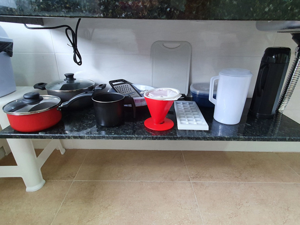 Acomodação exclusiva com 2 quartos, 1 banheiro e cozinha equipada com geladeira, micro-ondas, cooktop elétrico, liquidificador, sanduicheira, panelas, frigideira e demais utensílios básicos.
