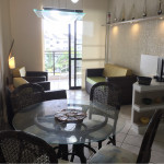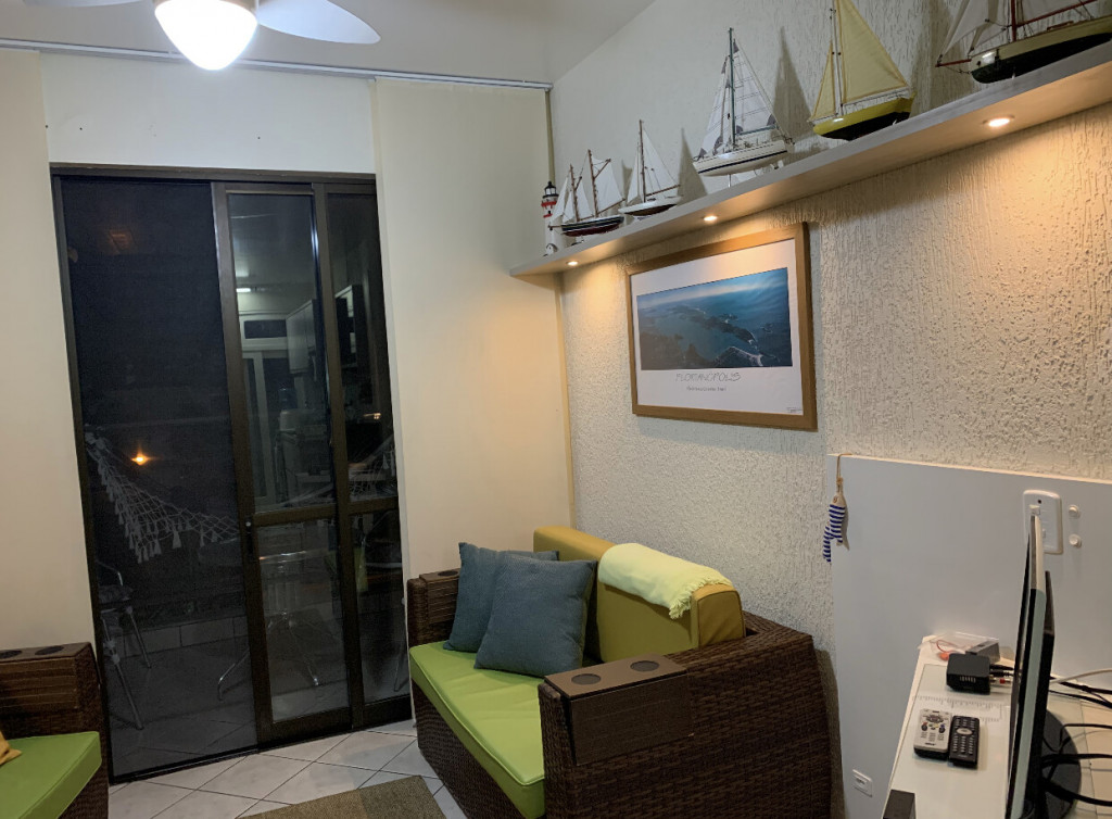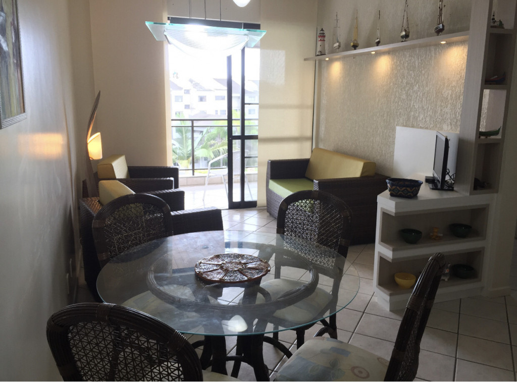 Estrutura moderna em condimínio com piscinas, quadra esportiva, jardins, segurança 24 horas. Apt com dois quartos (uma suite), dois banheiros, sala, sala de jantar, cozinha completa, varandas com vistas para os jardins do condomínio e para o mar. Garagem coberta para um carro. Aceitamos um máximo de quatro pessoas, incluindo crianças. Não fumantes!