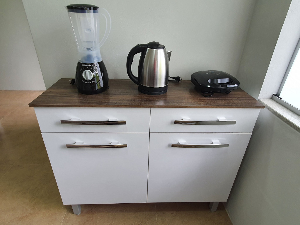 Acomodação exclusiva com 2 quartos, 1 banheiro e cozinha equipada com geladeira, micro-ondas, cooktop elétrico, liquidificador, sanduicheira, panelas, frigideira e demais utensílios básicos.
