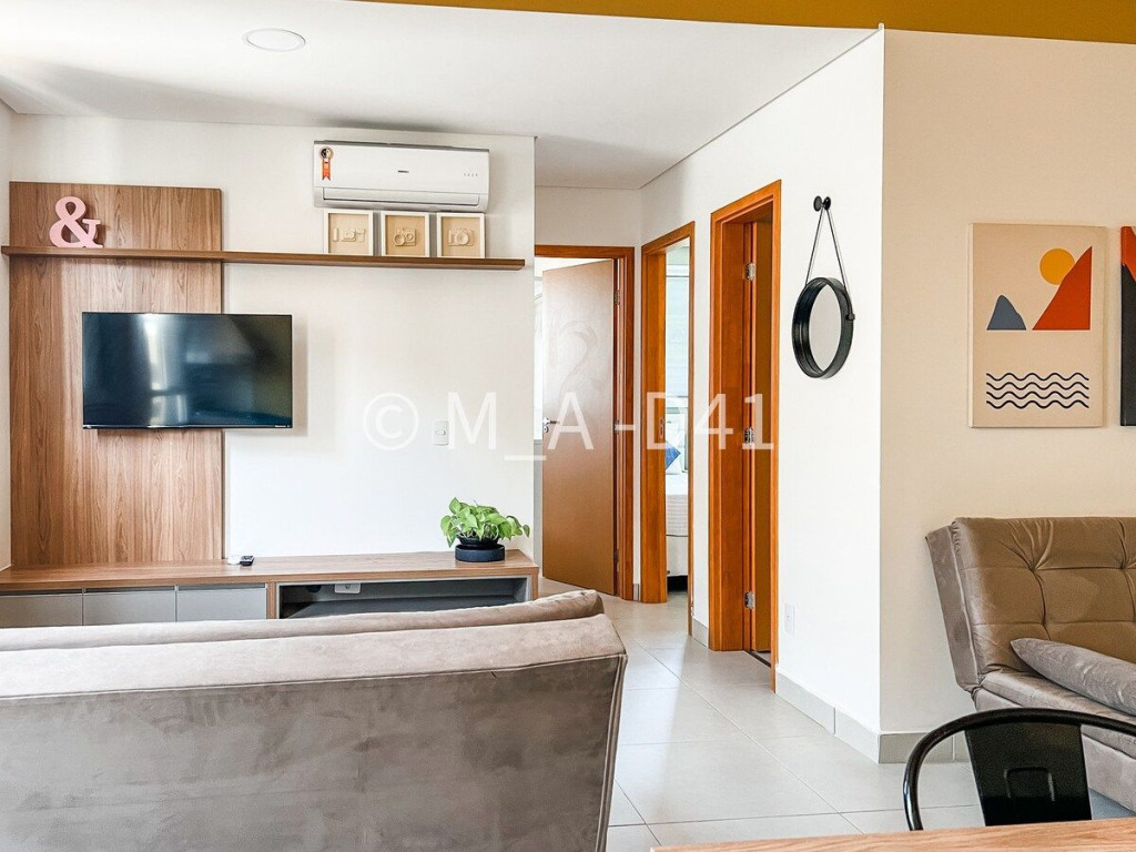 O apartamento possui ar condicionado na sala e na suíte. Quantidade suficiente para manter o apartamento fresco.