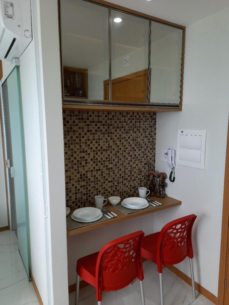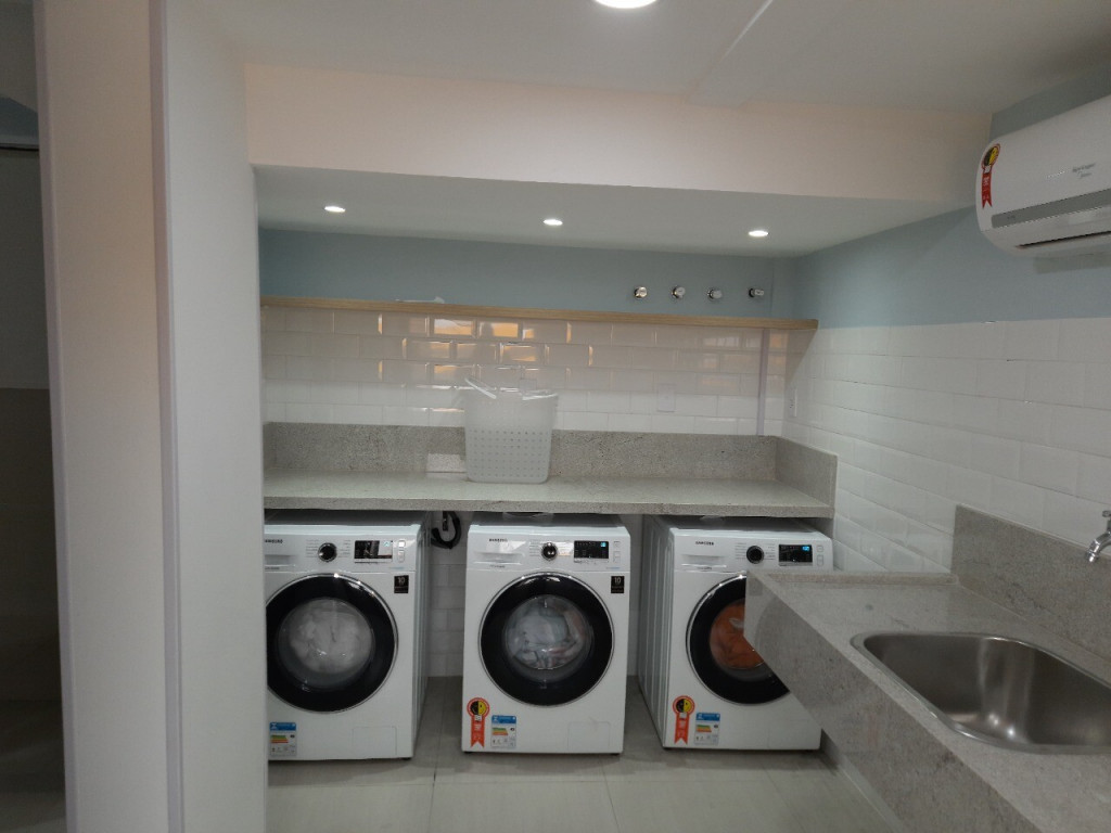 Apto. 7º andar, frente praia. Estúdio, 1 suíte, cozinha/sala, garagem privativa, portaria 24h. Lavanderia máquinas de lavar e secadora, coworking, academia e Jacuzzi.