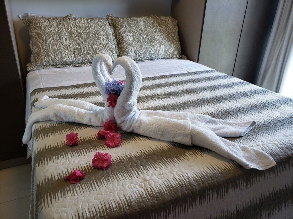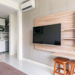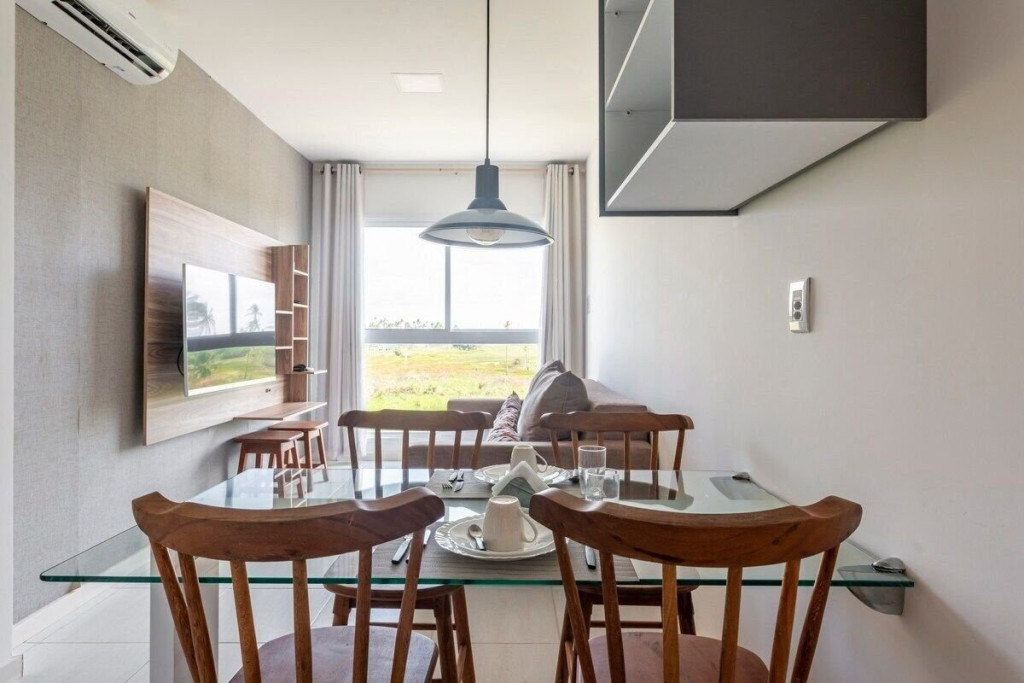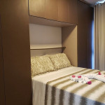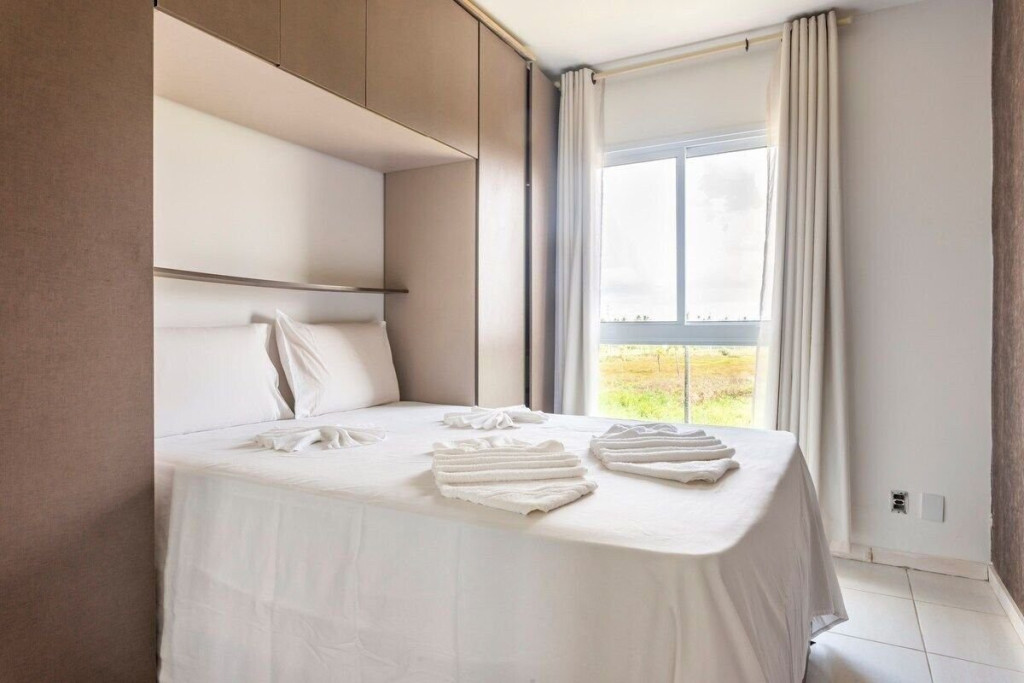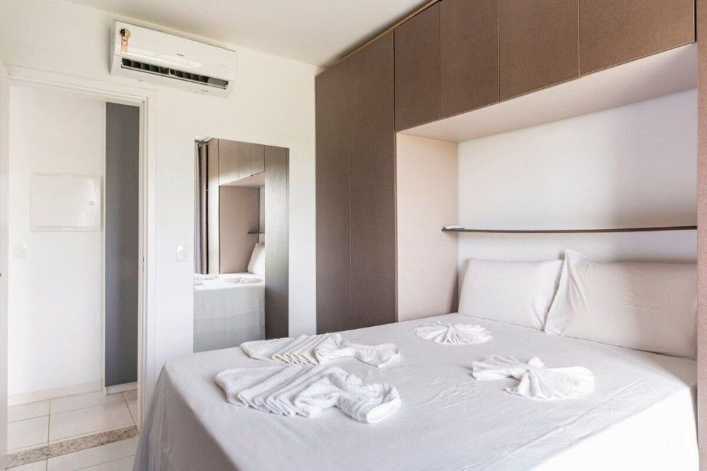 Flat de 1 quarto, com 30m², localizado na torre Villa Sol 3° andar, acesso c/ elevador. Dispomos de wi-fi, smart tv, ar condicionado na sala e no quarto, cozinha totalmente equipada. Quarto com cama de casal e Banheiro com chuveiro elétrico. Acomoda 4 pessoas, 2 no quarto e 2 na sala. Estacionamento para um veículo. Parque infantil, quadra poliesportiva, campo de futebol, ralf de skate, piscina com cascata e bar molhado, academia, restaurante, mini mercado e outras facilidades.