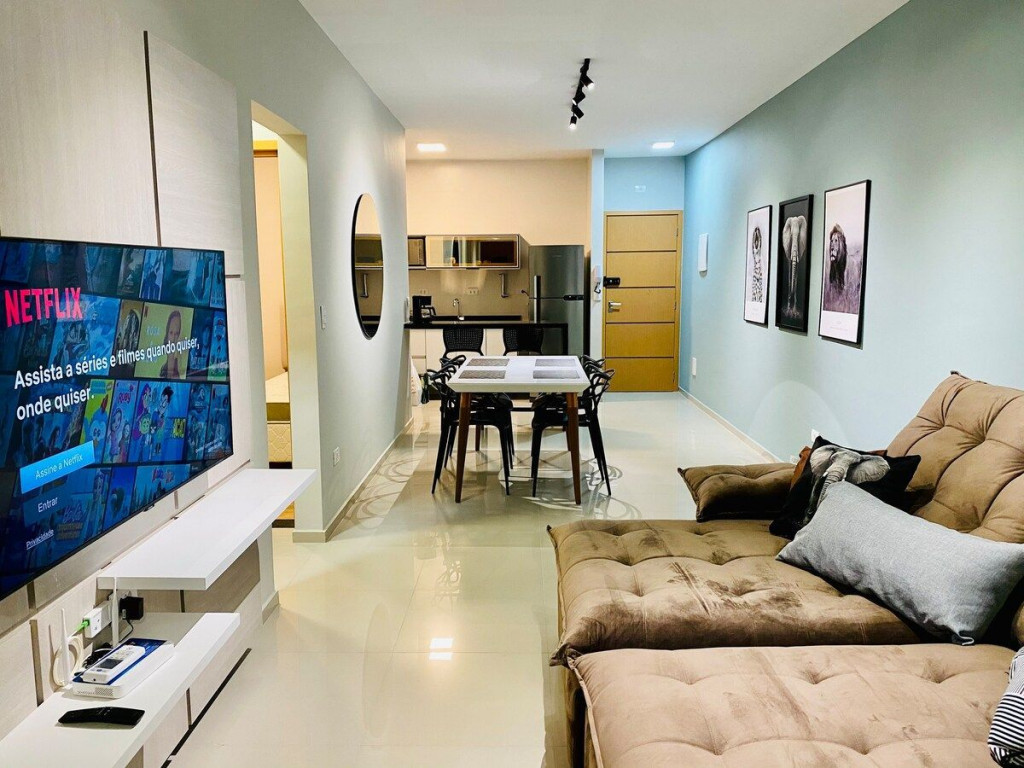 Todos os colchões são castor D45. Sofá reclinável e ajustável impermeável de 2,5 mt de largura tecido suede. Armários embutidos nos dois quartos, com cabide e gavetas. Banheiros com box de vidro temperado. Apartamento com area útil de 75m². Não oferecemos roupa de cama, toalhas de banho e mantas.2 vagas de garagem cobertas. Apartamento com sistema self checkin, chegue a hora que quiser após as 15h.