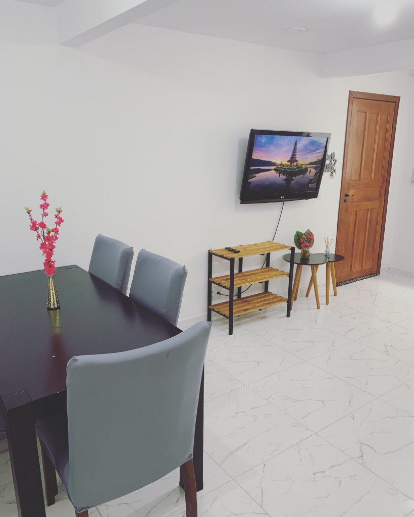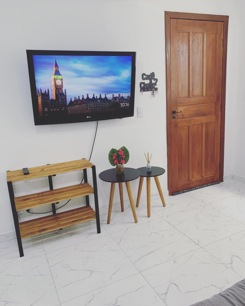 Meu apartamento situa-se no centrinho da praia, a apenas 600m do mar (5 minutos de caminhada). Totalmente mobiliado, com capacidade para até 7 pessoas. Possui dois quartos, ar condicionado, cozinha equipada e máquina de lavar. Conta também com churrasqueira portátil na varanda. Vaga oblíqua em frente ao prédio.