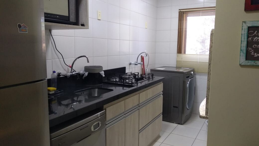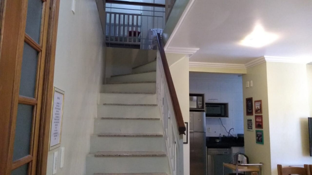 Possui 4 quartos com camas de casal e sofá cama casal, possui cômoda, ar condicionado, cozinha completa com forno, fogão, microondas, torradeira, churrasqueira, entre outros utensílios, tem uma pequena lavanderia com uma máquina de lavar roupas.