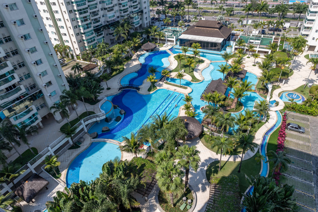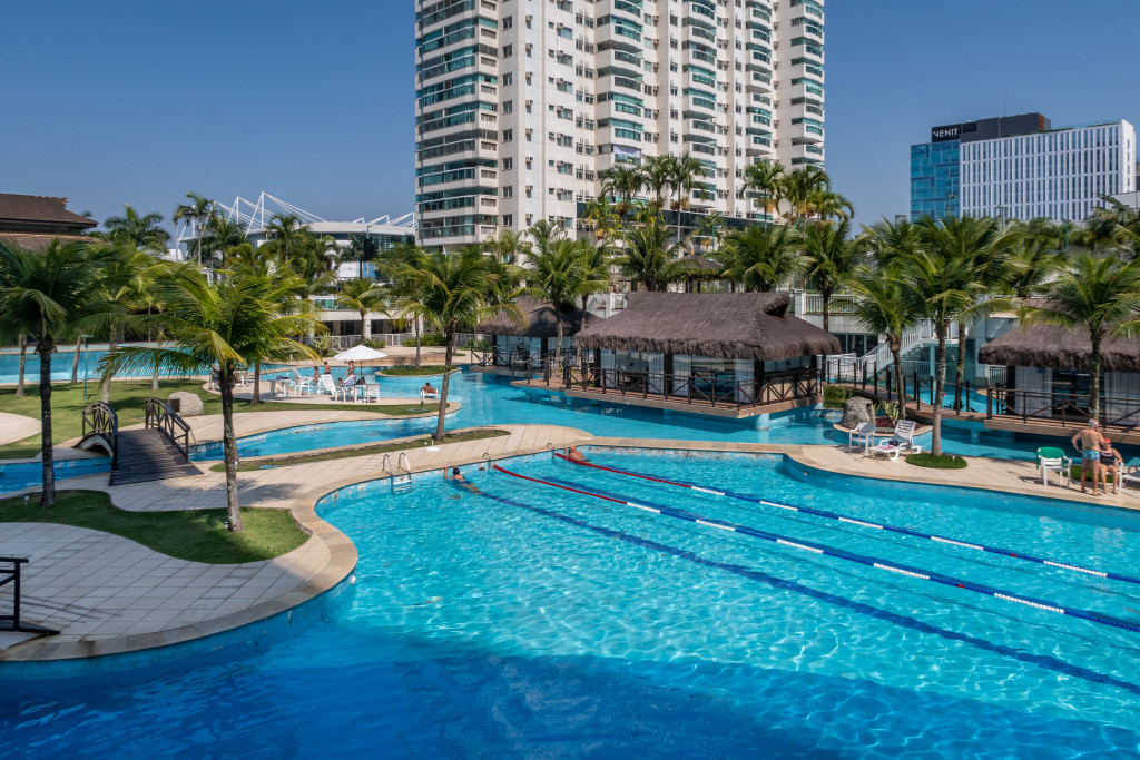 Um resort com total segurança, 24 horas por dia pois tem acesso eletrônico. Incrível parque aquático. Bar molhado, piscina aquecida, sauna seca e a vapor. Spa com hidromassagem, salão de beleza, campos de futebol de grama sintética, mini golf, boliche, academia, quadra poliesportiva, vôlei de praia, quadras de tênis e squash. Salão de jogos, Lan House, Cinema, Restaurante, Mercearia, Bar, Espaço infantil. Portanto nem é preciso sair do condomínio.