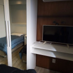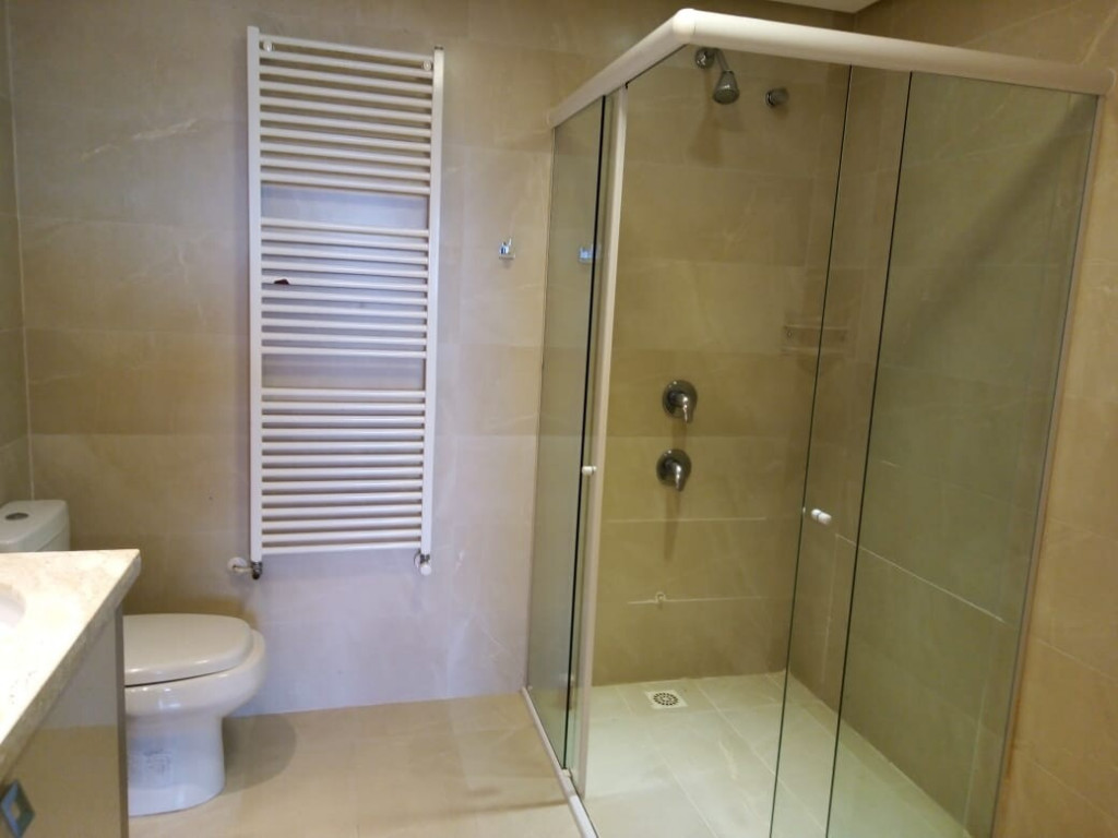 Oferece água quente e ar condicionado.