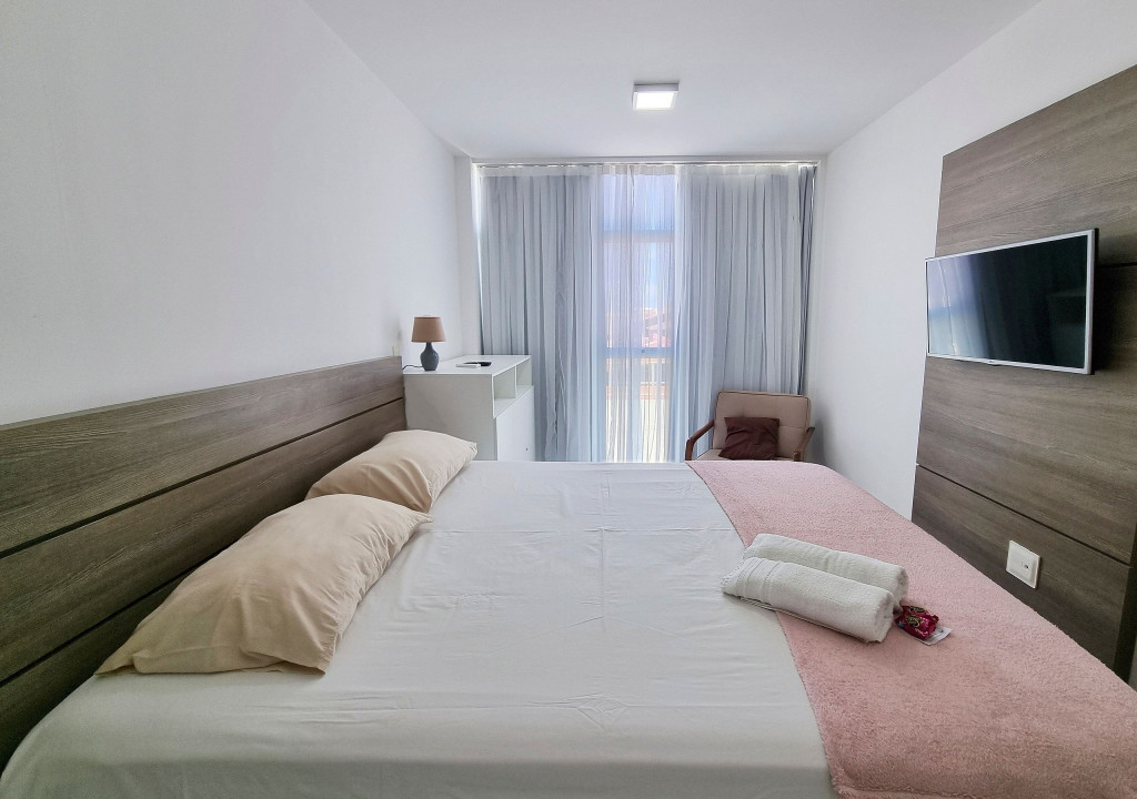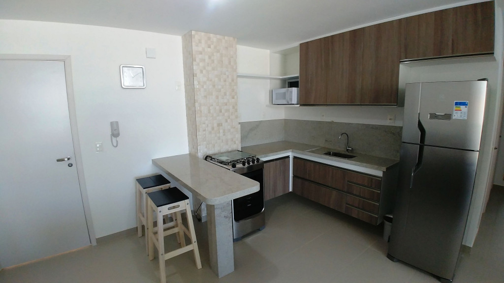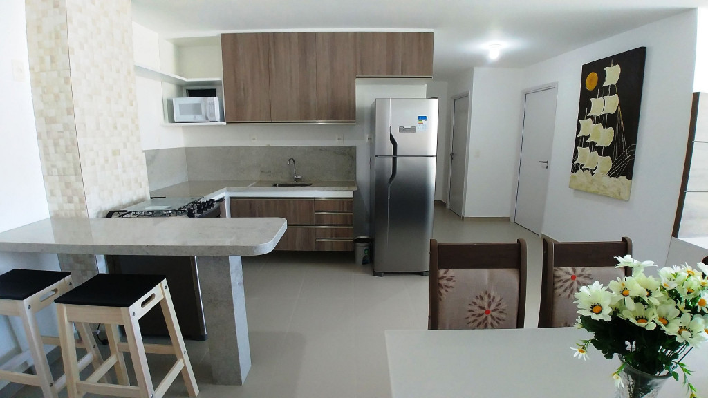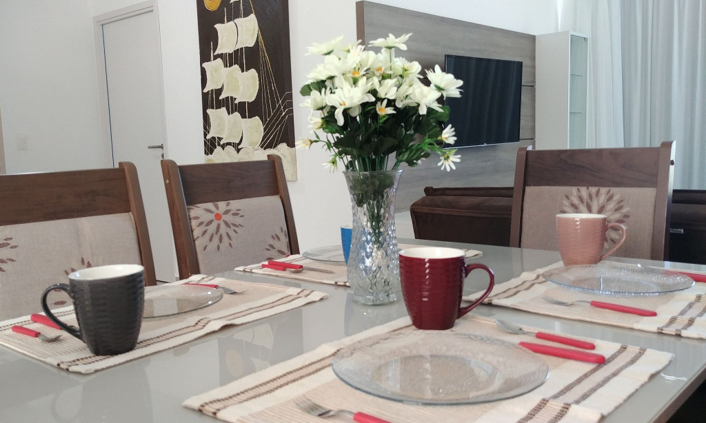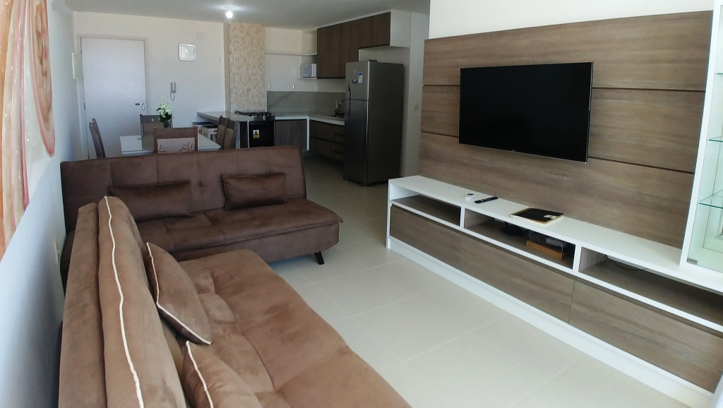 Apartamento amplo, confortável, dispondo de mobiliário novo e uma moderna decoração.