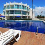 Dispomos de uma linda piscina de frente ao mar, jardins e área de lazer para pratica de esportes. O condomínio conta com área de churrasqueira, portaria 24h e garagem.
