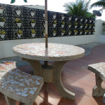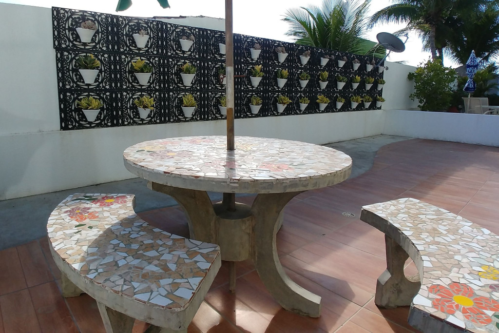 Possui uma amplo terraço privativo com móveis de jardim.