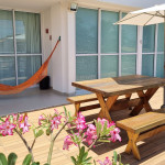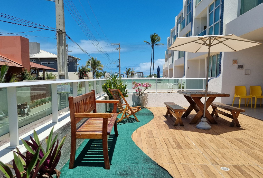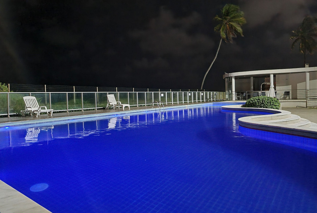 Dispomos de uma linda piscina de frente ao mar, jardins e área de lazer para pratica de esportes. O condomínio conta com área de churrasqueira, portaria 24h e garagem.