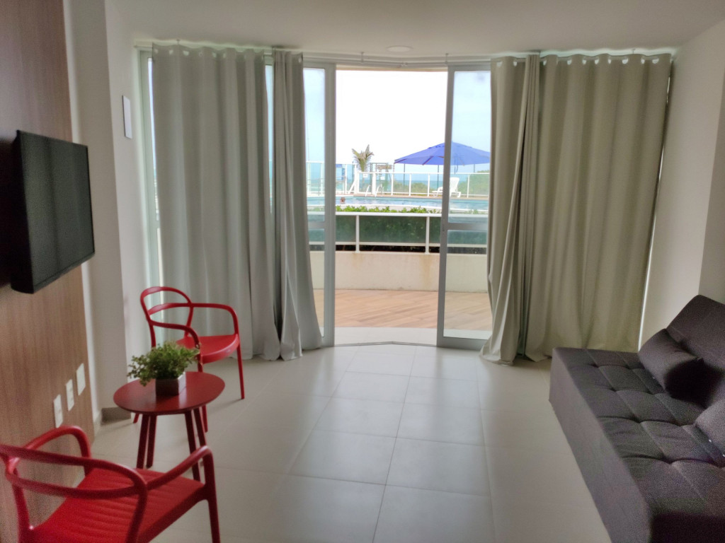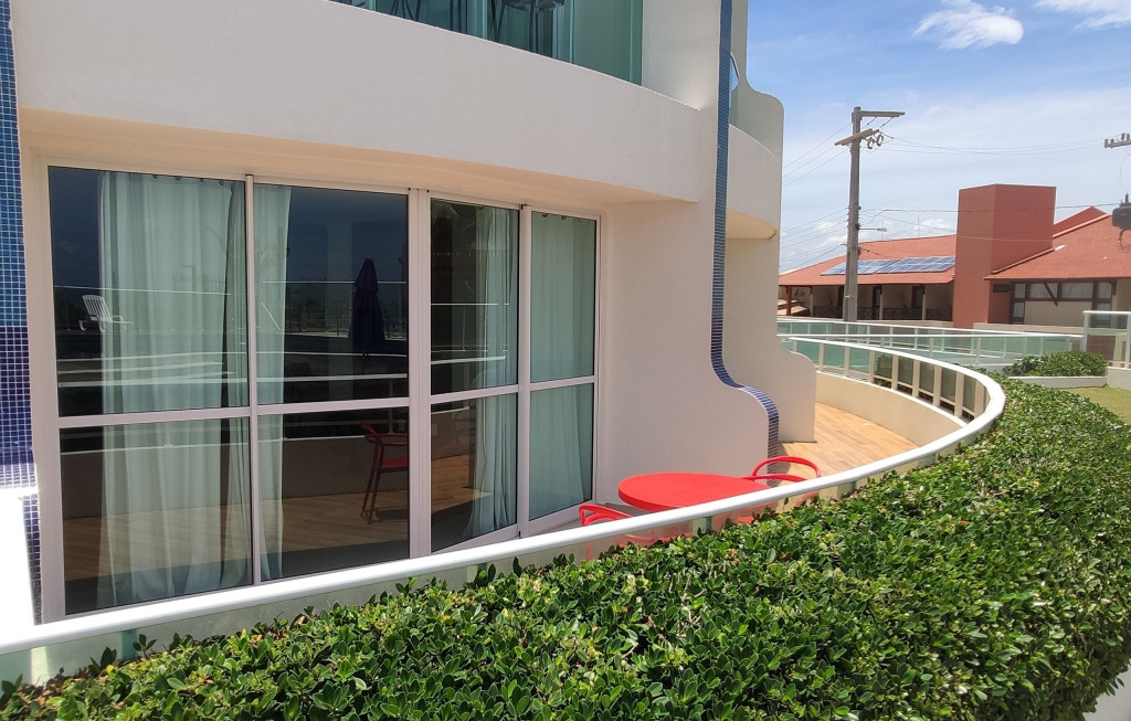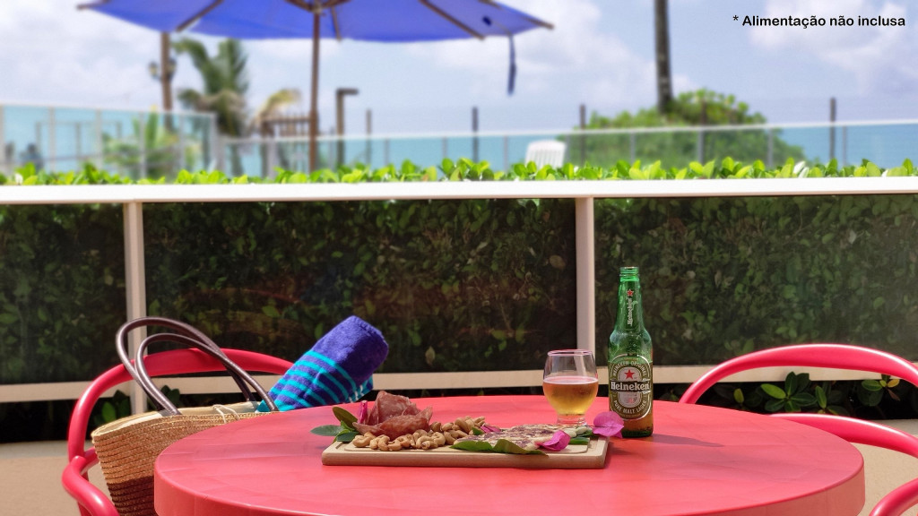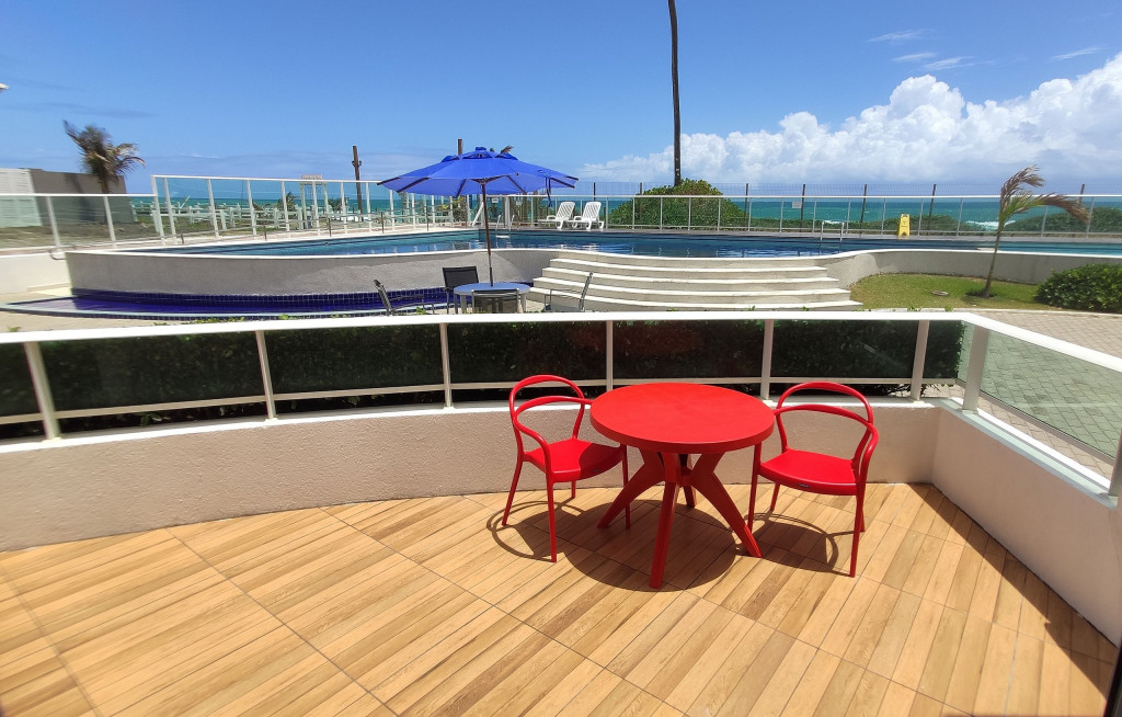 Apartamento com terraço privativo frente ao marIdeal para um descanso de rede ou para as crianças brincarem com tranquilidade.