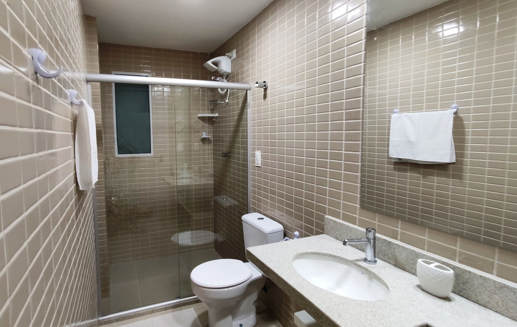 Dispomos de uma linda piscina de frente ao mar, jardins e área de lazer para pratica de esportes. O condomínio conta com área de churrasqueira, portaria 24h e garagem.