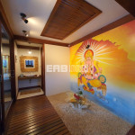 Quatro suítes garantem privacidade e conforto aos ocupantes, que têm, como ponto de encontro, a área da churrasqueira, um dos destaques do imóvel.