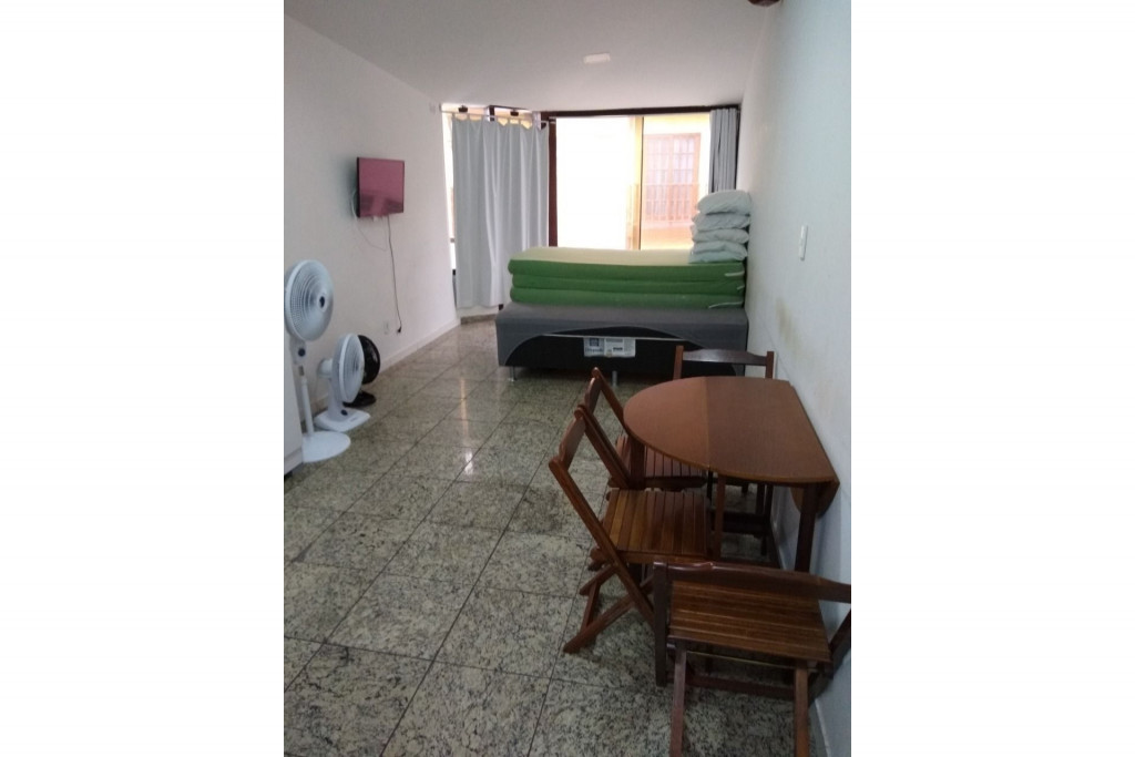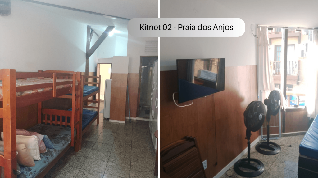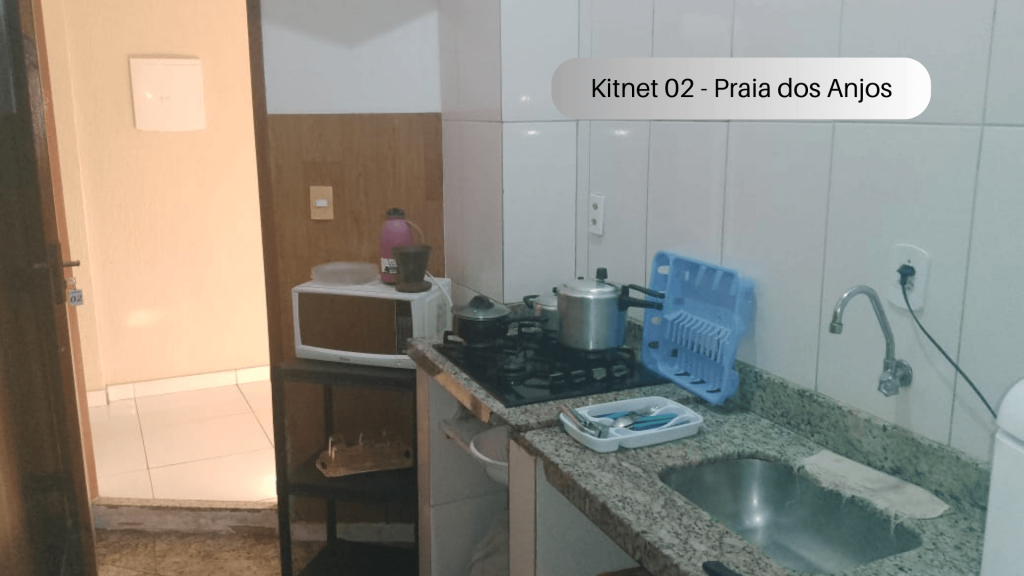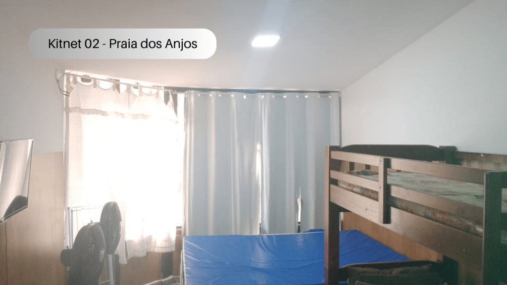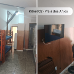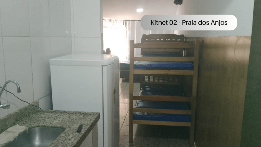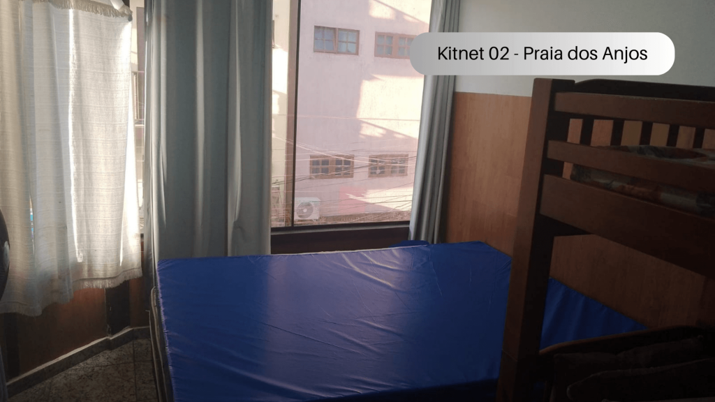 Imóvel com quarto, cozinha e banheiro localizado na Praia dos Anjos. No quarto, há uma cama e duas beliches. Na cozinha tem geladeira, forno Micro-ondas, fogão sem forno, utensílios de cozinha e louças. Não serão disponibilizados produtos de higiene pessoal, nem roupa de cama e banho. Há ventilador e TV com canais abertos. Wi-Fi disponível. Não há estacionamento. Há vários bares, restaurantes, mercados e farmácias bem próximos do imóvel. O imóvel fica no segundo andar, tendo que subir escadas.