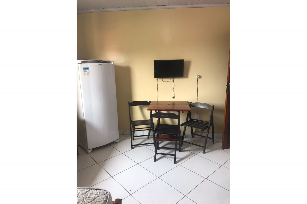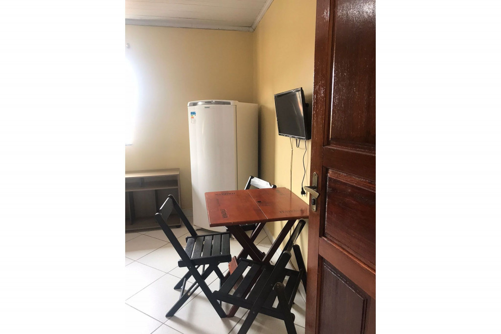 Kitnet com cozinha e banheiro no Centro de Arraial do Cabo e a 500 metros da Praia Grande. O imóvel é equipado com cama de casal, beliche, ventilador, televisão, mesa e cadeiras, fogão, geladeira, forno micro-ondas, liquidificador, sanduicheira e utensílios de cozinha. Há Wi-Fi disponível. Não Há estacionamento, mas o carro poderá ficar estacionado nas ruas próximas. O local é bem tranquilo e seguro.