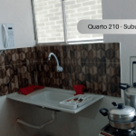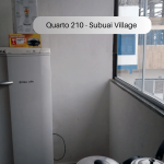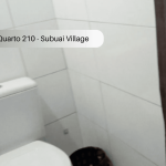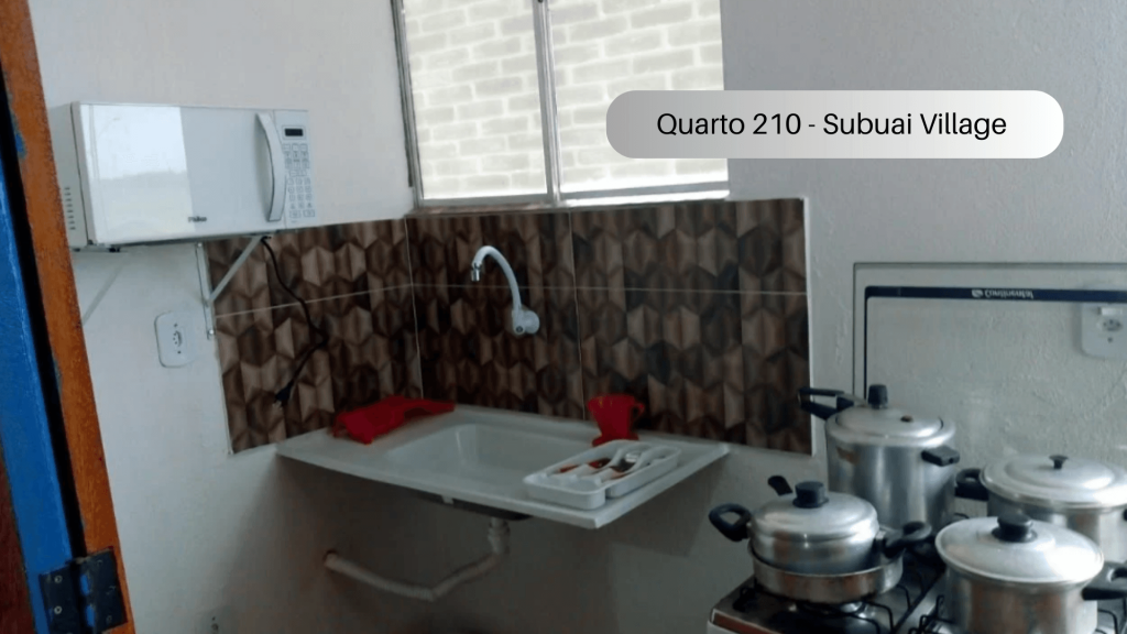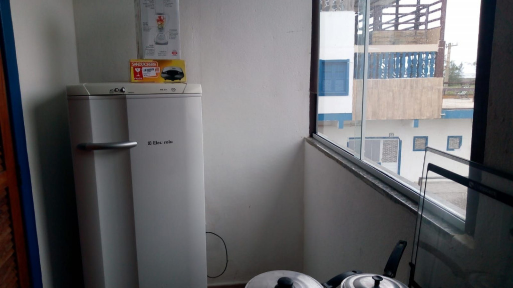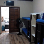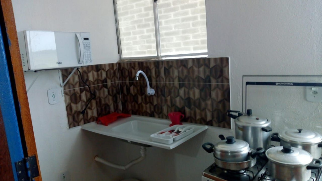 Imóvel com quarto e cozinha, sendo o banheiro de uso compartilhado. Há banheiros masculino e feminino. O quarto é equipado com TV, ventilador e 4 beliches, a cozinha é equipada com geladeira, forno Micro-ondas, fogão e utensílios. Não oferecemos roupa de cama, banho e produtos de higiene. Há Televisão no apartamento com os canais básicos da TV aberta. Há uma piscina para uso compartilhado. Wi-Fi disponível. Estacionamento incluso para um carro. Fica no segundo andar, tendo que subir escadas.