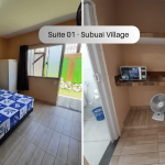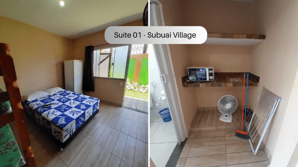 Suíte no térreo com quarto e banheiro privativos a 300 metros da Praia do Pontal. O imóvel é equipado com TV, ventilador, geladeira, forno Micro-ondas e utensílios. Banheiro privativo com box e água quente. Há cozinha compartilhada com todos os hóspedes com fogão e utensílios. Os televisores são os canais básicos da TV aberta. Tem uma piscina para uso compartilhado. Temos Wi-Fi disponível. Há estacionamento disponível para um carro. Imóvel localizada entre Arraial do Cabo e Cabo Frio.