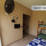 Os quartos são privativos. Não há compartilhamento de quarto na hospedagem.