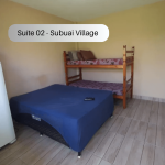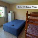 Suíte no térreo com quarto e banheiro privativos a 300 metros da Praia do Pontal. O imóvel é equipado com TV, ventilador, geladeira, forno Micro-ondas e utensílios. Banheiro privativo com box e água quente. Há cozinha compartilhada com todos os hóspedes com fogão e utensílios. Os televisores são os canais básicos da TV aberta. Tem uma piscina para uso compartilhado. Temos Wi-Fi disponível. Há estacionamento disponível para um carro. Imóvel localizada entre Arraial do Cabo e Cabo Frio.