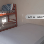Suíte no térreo com quarto e banheiro privativos a 300 metros da Praia do Pontal. O imóvel é equipado com TV, ventilador, geladeira, forno Micro-ondas e utensílios. Banheiro privativo com box e água quente. Há cozinha compartilhada com todos os hóspedes com fogão e utensílios. Os televisores são os canais básicos da TV aberta. Tem uma piscina para uso compartilhado. Temos Wi-Fi disponível. Há estacionamento disponível para um carro. Imóvel localizada entre Arraial do Cabo e Cabo Frio.