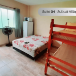Suíte no térreo com quarto e banheiro privativos a 300 metros da Praia do Pontal. O imóvel é equipado com TV, ventilador, geladeira, forno micro-ondas e utensílios. Banheiro privativo com box e água quente. Há cozinha compartilhada com todos os hóspedes com fogão e utensílios. Os televisores são os canais básicos da TV aberta. Tem uma piscina para uso compartilhado. Temos Wi-Fi disponível. Há estacionamento disponível para um carro. Imóvel localizada entre Arraial do Cabo e Cabo Frio.