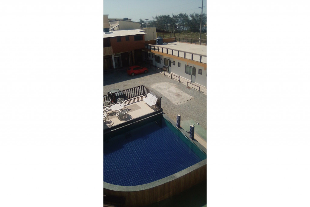 Fica na RJ 140, local tranquilo e com uma vista linda para a Praia nas áreas comum da hospedagem.