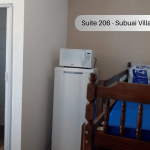A suíte fica no segundo andar (precisa subir escadas) com quarto e banheiro privativos. O imóvel é equipado com TV, ventilador, geladeira, forno micro-ondas e utensílios. Banheiro privativo com box e água quente. Há cozinha compartilhada com todos os hóspedes com fogão e utensílios. Os televisores são os canais básicos da TV aberta. Tem uma piscina para uso compartilhado. Temos Wi-Fi disponível. Há estacionamento disponível para um carro. Imóvel localizada entre Arraial do Cabo e Cabo Frio.
