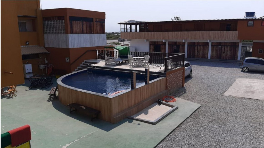 Fica na RJ 140, local tranquilo e com uma vista linda para a Praia nas áreas comum da hospedagem.