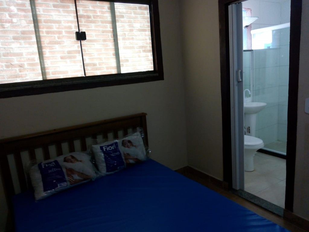 A suíte fica no segundo andar (precisa subir escadas) com quarto e banheiro privativos. O imóvel é equipado com TV, ventilador, geladeira, forno micro-ondas e utensílios. Banheiro privativo com box e água quente. Há cozinha compartilhada com todos os hóspedes com fogão e utensílios. Os televisores são os canais básicos da TV aberta. Tem uma piscina para uso compartilhado. Temos Wi-Fi disponível. Há estacionamento disponível para um carro. Imóvel localizada entre Arraial do Cabo e Cabo Frio.