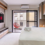 Situado em condomínio com infraestrutura de lazer com academia e piscina, nosso studio é uma ótima opção para quem busca praticidade e conforto.