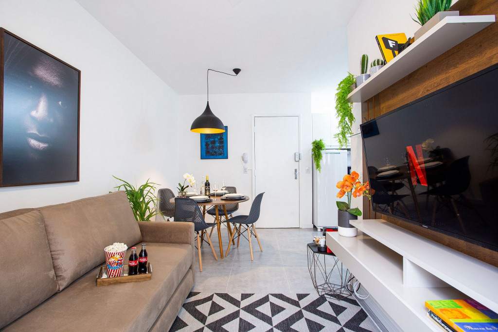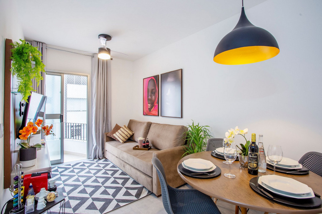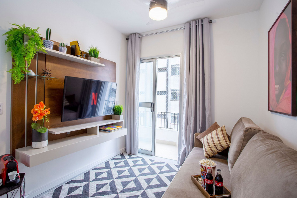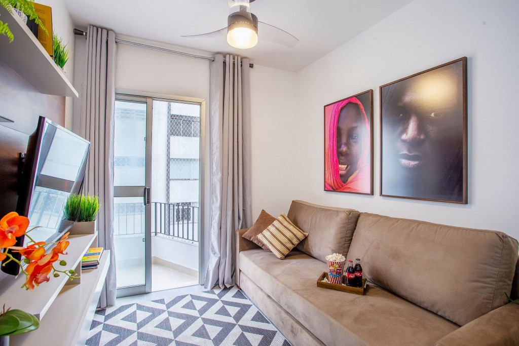 SALA: - Varanda com vista para a cidade: Desfrute de uma paisagem deslumbrante de São Paulo. Imagine acordar todas as manhãs e aproveitar de sua varanda a beleza desta cidade. - Rede de proteção, mesa e cadeira: Garantimos a segurança de sua família com uma rede de proteção em nosso imóvel. Além disso, oferecemos uma mesa e cadeira para momentos relaxantes ao ar livre. - Sofá-cama: Com um simples movimento, o sofá-cama se converte em uma superfície ampla e agradável para uma noite de sono tranquila. Seus mecanismos de abertura e fechamento são fáceis de usar, permitindo uma transição suave entre as duas funções, é uma opção prática para acomodar vocês durante a noite. - Smart TV de 43 polegadas: Relaxe e desfrute de uma ampla variedade de entretenimento, no sofá da sala, com nossa Smart TV de alta definição. Assista aos seus filmes e programas favoritos com qualidade excepcional. - Internet Ultra-Veloz: Mantenha-se conectado com o mundo durante sua estadia. Oferecemos acesso à internet de alta velocidade para que você possa compartilhar suas experiências e manter-se atualizado em todos os ambientes. - Mesa de Jantar para 4 pessoas: Compartilhe momentos especiais com amigos e familiares em torno de uma mesa espaçosa e elegante. Nossa mesa de jantar comporta até 4 pessoas, proporcionando um ambiente perfeito para refeições memoráveis. - Ventilador de teto: Mantenha-se fresco e confortável durante toda a sua estadia. Nosso imóvel possui ventilador de teto para garantir uma temperatura agradável em todos os ambientes. - Cortinas Blackout: Uma boa noite de sono é essencial. Por isso, em todos os quartos da nossa locação, você encontrará cortinas blackout, garantindo um ambiente escuro e silencioso para um descanso revigorante. - Fechadura Digital: Priorizamos sua segurança e tranquilidade. Nossa locação conta com uma fechadura digital de alta tecnologia, proporcionando praticidade e evitando a preocupação com chaves. QUARTO: Cada quarto em nossas locações é cuidadosamente decorado e mobiliado, oferecendo conforto e privacidade para todos os inquilinos. - Cama de Casal: Relaxe e recarregue suas energias em uma cama de casal confortável. Garantimos noites tranquilas e revigorantes para que você possa aproveitar ao máximo cada segundo de seu sono. - Guarda-Roupa: Nosso imóvel oferece um guarda-roupa amplo, permitindo que você organize suas roupas e pertences com facilidade. Desfaça as malas e sinta-se verdadeiramente em casa. - Ventilador de teto: Mantenha-se fresco e confortável durante toda a sua estadia. Nosso imóvel possui ventilador de teto para garantir uma temperatura agradável em todos os ambientes. COZINHA: Cozinha muito bem equipada: Prepare deliciosas refeições na nossa cozinha completa e moderna. Equipada com todos os utensílios e eletrodomésticos necessários, você terá liberdade para explorar suas habilidades culinárias. - Taças de vinho: Brinde momentos memoráveis com taças de vinho prontas para receber suas celebrações. - Máquina Nespresso: Desperte seus sentidos com uma xícara de café fresco todas as manhãs. Em nossa locação, disponibilizamos uma máquina Nespresso para que você possa apreciar a sua bebida preferida. No entanto, é necessário trazer suas próprias cápsulas de café, pois não fornecemos. - Fogão: Sinta-se em casa na nossa cozinha, completa com um moderno fogão, proporcionando a flexibilidade para preparar suas refeições favoritas. Seja um mestre culinário ou alguém que gosta de experimentar novos sabores, você terá tudo o que precisa à sua disposição. - Depurador de Ar: Mantenha o ambiente sempre fresco e agradável com o depurador de ar. Respire tranquilamente e desfrute de um ambiente livre de odores indesejados. - Microondas: Prepare suas refeições com praticidade e rapidez, tendo à disposição um micro-ondas moderno e funcional. BANHEIRO: - Secador de Cabelo: Para sua conveniência, disponibilizamos um secador de cabelo de qualidade em nosso imóvel. Dessa forma, você não precisa se preocupar em trazer o seu, permitindo que você viaje mais leve e confortável. - Chuveiro elétrico: Proporcionando conforto em todos os detalhes, garantindo um banho quente e relaxante em qualquer momento do dia. ÁREA COMUM: - Vaga de garagem: Oferecemos uma vaga de garagem para sua comodidade e segurança, garantindo que você tenha um local seguro para estacionar seu veículo. - Academia: Se manter ativo e saudável é importante para você, nossa academia moderna está pronta para atender às suas necessidades. Equipada com uma variedade de máquinas de qualidade, você poderá manter sua rotina de exercícios mesmo durante as férias. Mantenha-se em forma e cheio de energia durante toda a sua estadia. - Piscina: Mergulhe, relaxe e aproveite a nossa piscina, oferecendo momentos de alegria e descontração. ADMINISTRAÇÃO DO IMÓVEL: O Imóvel é administrado pela Brazilian Corner, uma empresa nacional que oferece aos seus clientes, que viajam a lazer ou negócios, a experiência de locar imóveis únicos durante uma temporada. As residências são planejadas para prover grande conforto. Nosso escritório fica no bairro Vila Madalena em São Paulo. Desde 2018, a Brazilian Corner é pioneira em seu ramo, pois além de proporcionar imóveis bem estruturados, também é responsável por toda a logística e suprimentos básicos que compõe cada uma de suas residências, o que as torna extremamente funcionais. Nosso grande diferencial é a boa comunicação e a seriedade com que atuamos para resolver qualquer entrave que possa acontecer antes, durante, e/ou após a estadia de nossos clientes. Nossos colaboradores são treinados e têm as ferramentas necessárias para proporcionar um excelente nível de serviço. Os apartamentos e casas são limpos por nossas equipes especializada, a nossa roupa de cama e banho são lavadas e higienizadas em lavanderias profissionais. Mantemos o pro