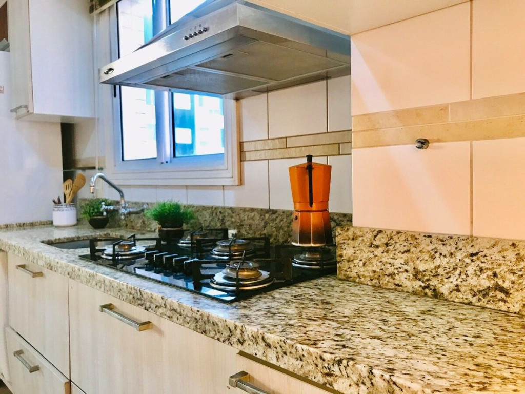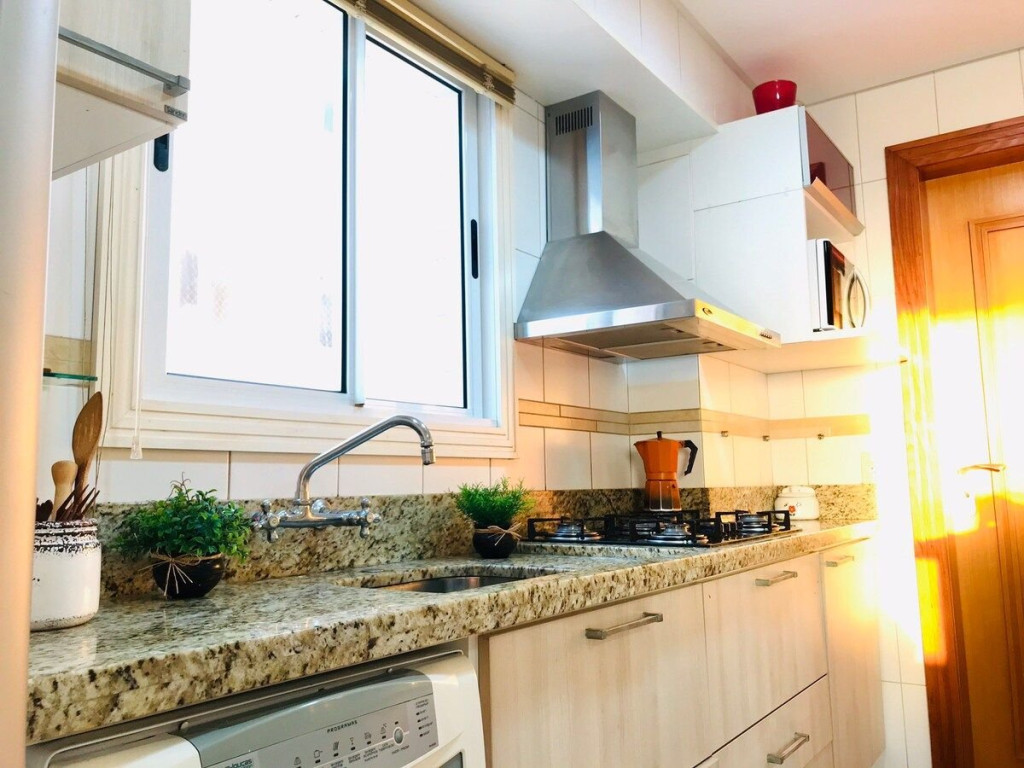 Na pracinha quase em frente você encontra playground para crianças, cancha de bocha, quadras de vôlei e de futebol de areia, além de um ótimo gramado para tomar um chimarrão ou passear com seus pets. Fica próximo a supermercados, farmácias e comércio em geral.