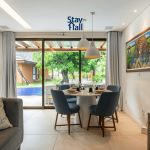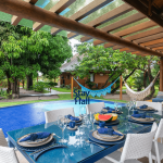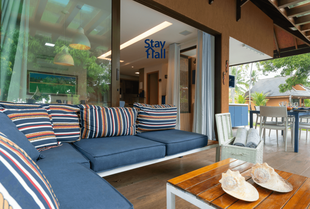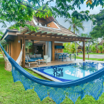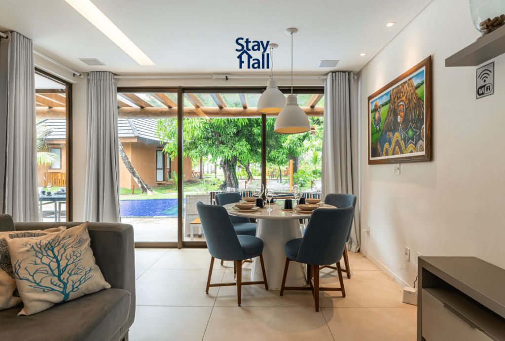 O Bangalô Carneiros SH048 possui 3 quartos (sendo 2 suítes), acomoda até 9 pessoas e está localizado no sofisticado condomínio à beira-mar Eco Resort na praia dos Carneiros - PE, bem ao lado da famosa Igrejinha dos Carneiros. O mar na frente do condomínio é calmo e quente, ideal para banhos.