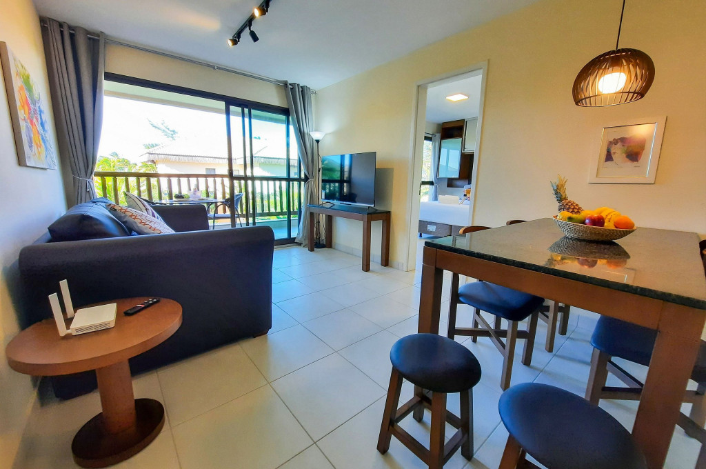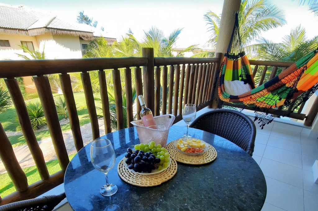 Lindo Bangalô G no VG Sun Cumbuco (ao lado da portaria praia) no 1o andar (não é térreo, acesso via escada), posição Norte Sul, 2 suítes, 69mts, decorado pensando nos seus dias de descanso. Perfeito para descansar após um dia de praia ou na enorme piscina do complexo. Acomodações: Suíte Master - Cama Queen, armários e Ar-Condicionado. A outra suíte possui 1 Cama Casal Queen, armários e ar-condicionado. Sala com decoração moderna, sofá cama casal, ventilador (não tem ar condicionado na sala) e TV Smart. A cozinha é super completa, cooktop (não temos forno), máquina lava e seca roupas, Wi-FI de alta velocidade e oferecemos roupas de cama e banho. 2 vagas na garagem. A varanda é ampla, com mobília.