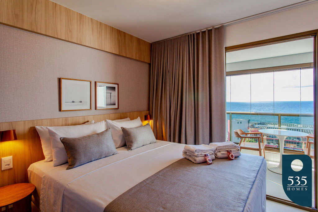 Imóvel novo, bem equipado e decorado, a poucos metros da praia da Barra. Vista deslumbrante para o mar.
