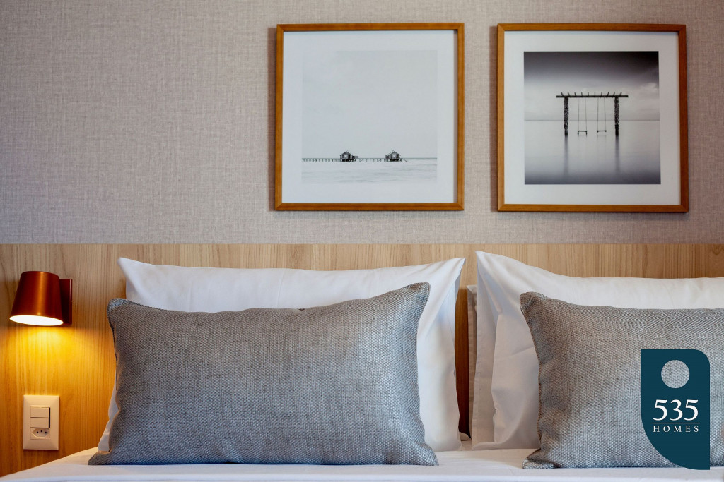 A hospedagem oferece enxoval profissional de hotelaria.