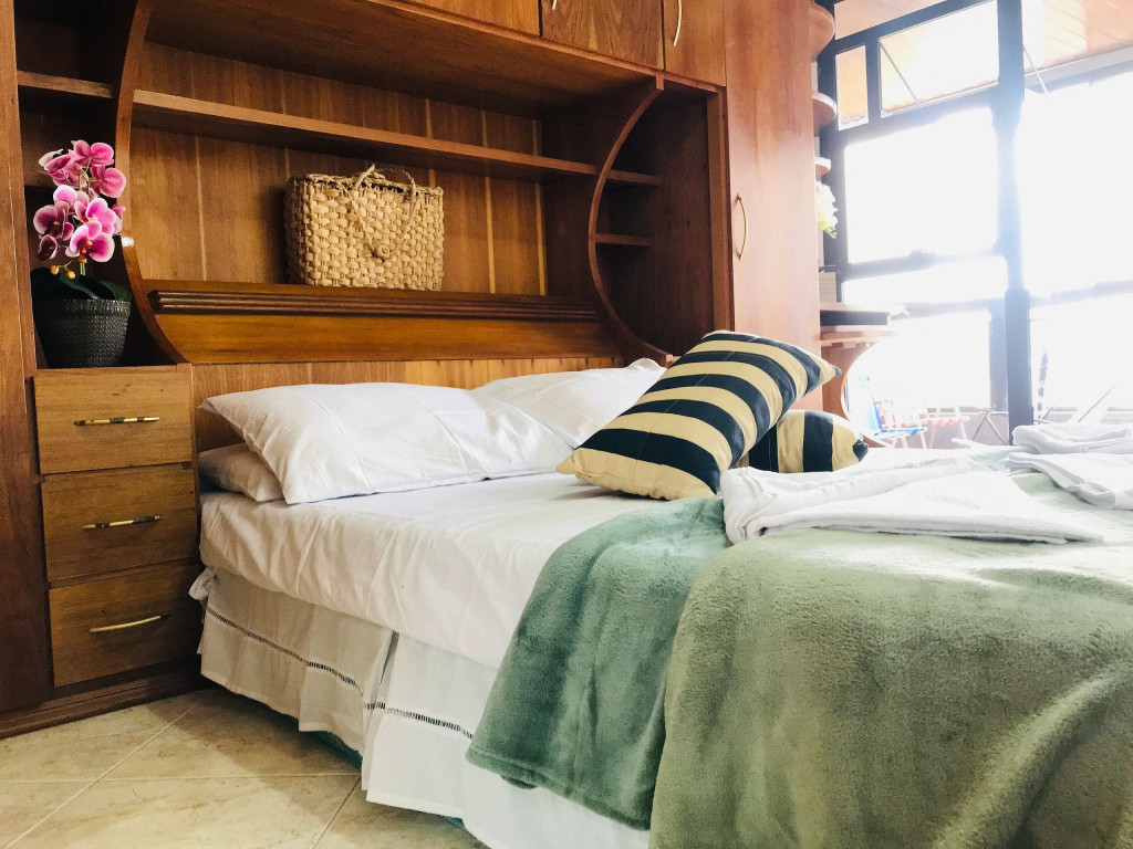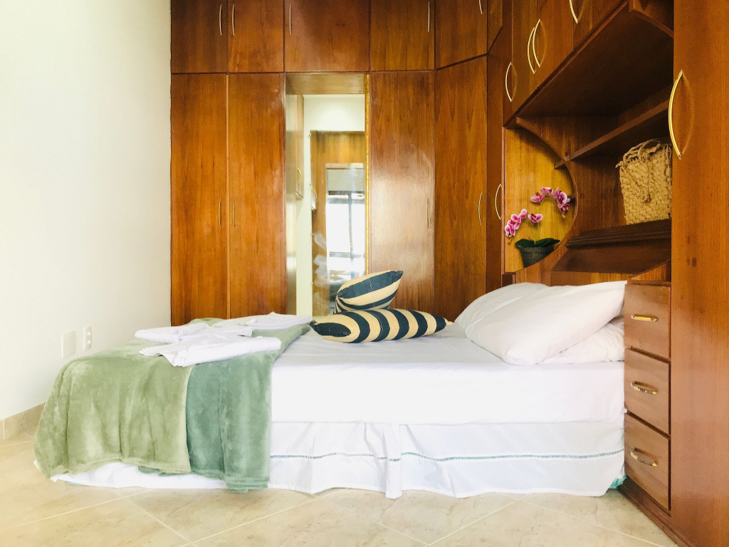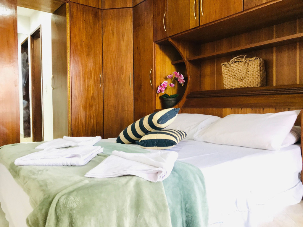 Sua hospedagem possui 1 cama de casal, 3 colchões de solteiro, TV a cabo, Wi-Fi, além de itens de casa, água quente! Dois destaques do apartamento são o aconchego e silêncio que ele oferece, ao mesmo tempo dentro e fora da cidade. Pertinho da praia, muita gente leva seus Pets para correr e também brincar com crianças ali, enquanto desaceleram da correria do dia a dia.
