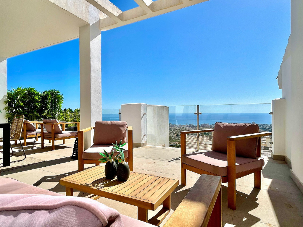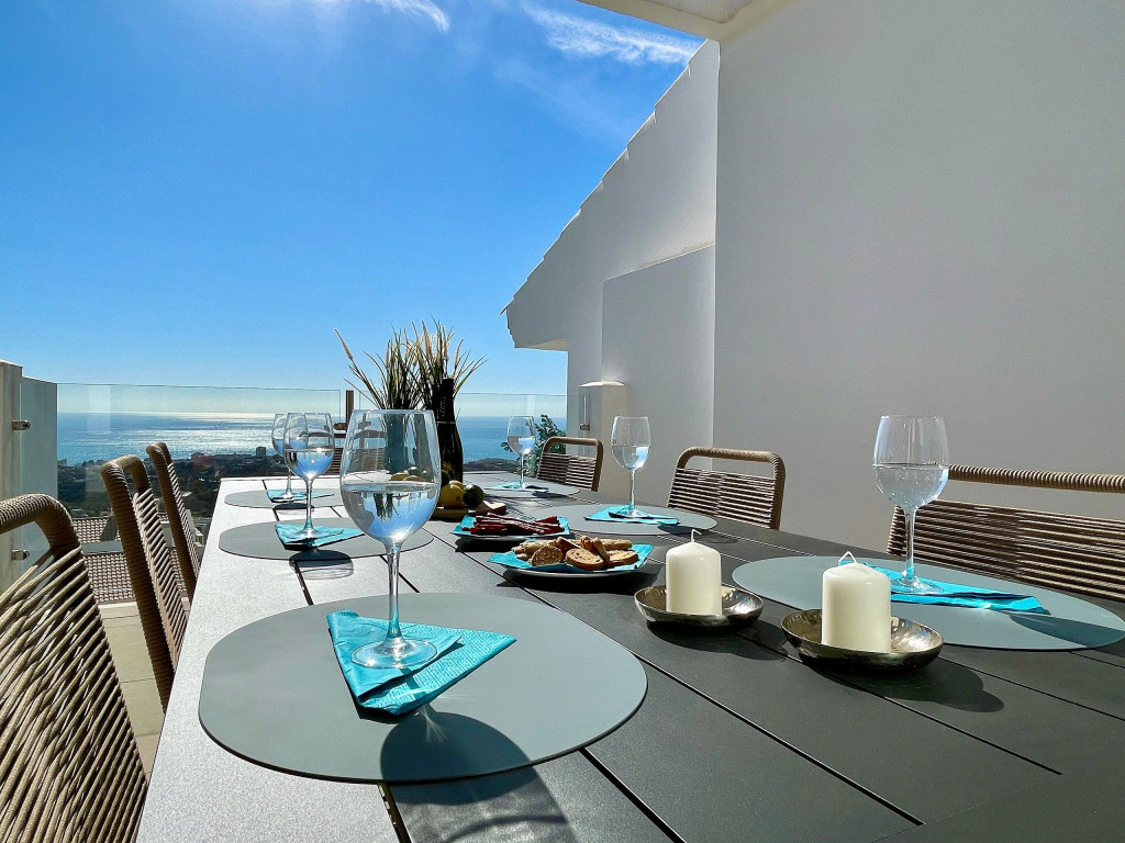 Uma cobertura luxuosa com design profissional de ponta na residência Bayview em Benalmádena, com incríveis vistas do mar e da montanha, com o melhor conforto de férias e um sentimento caseiro. Dois terraços privados com vista direta para o mar e vista para toda a costa. Bayview tem uma das mais belas áreas de piscinas tropicais com vista para as montanhas e o mar, e uma piscina de grande porte. Do aeroporto de Málaga são apenas 10 minutos de carro até o apartamento.